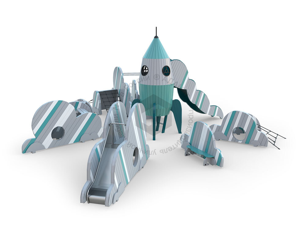 Функциональный детский комплекс в виде космодрома принесёт множество впечатлений и море удовольствия во время игры. Представлен в спокойной серо-голубой цветовой палитре. Будет интересен детям разных возрастов благодаря разнообразным игровым элементам.