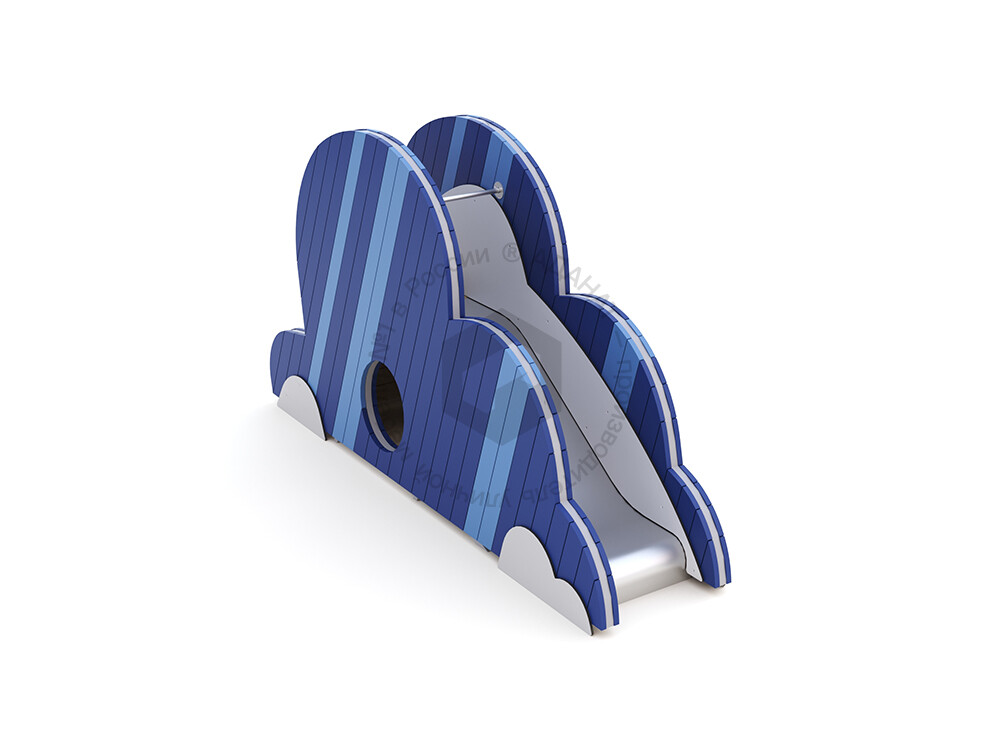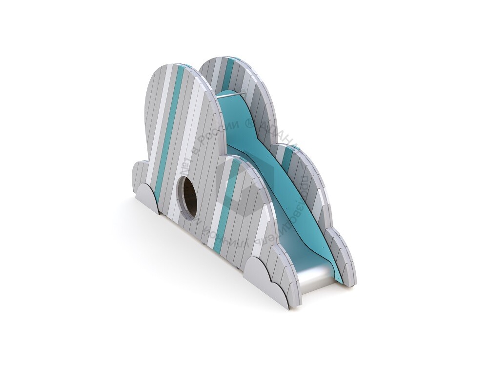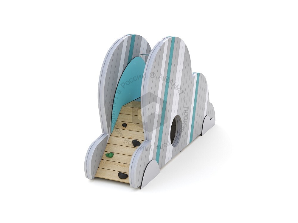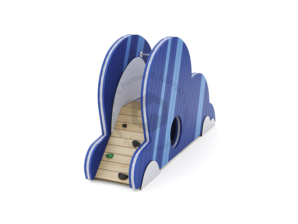 Модуль игрового комплекса «Облака», который может использоваться как самостоятельный объект или стать частью вашей игровой системы. Предназначен для активных игр на свежем воздухе. Оборудован горкой и подъёмом с зацепами. Внутри есть пространство, в которое можно залезть.