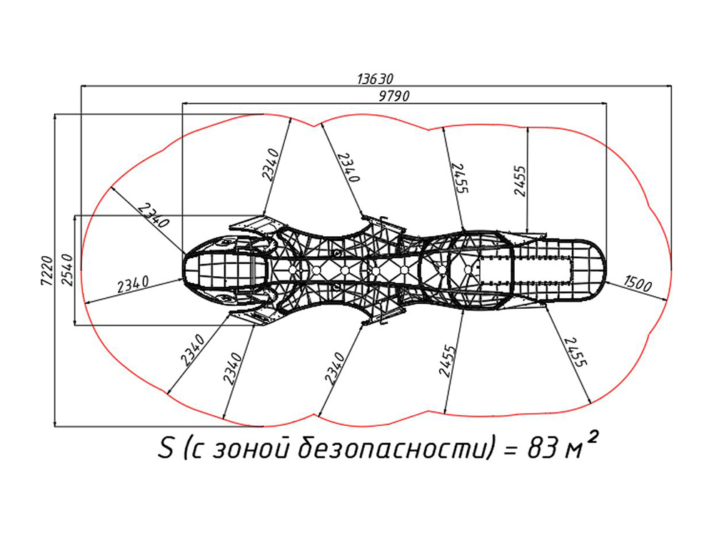 - Канат: армированный полипропилен шестипрядный, диаметр 16 мм;