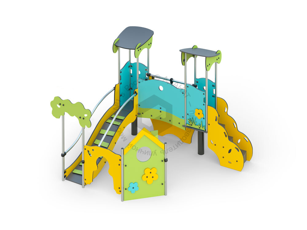 Вся площадка состоит из металла и пластика.