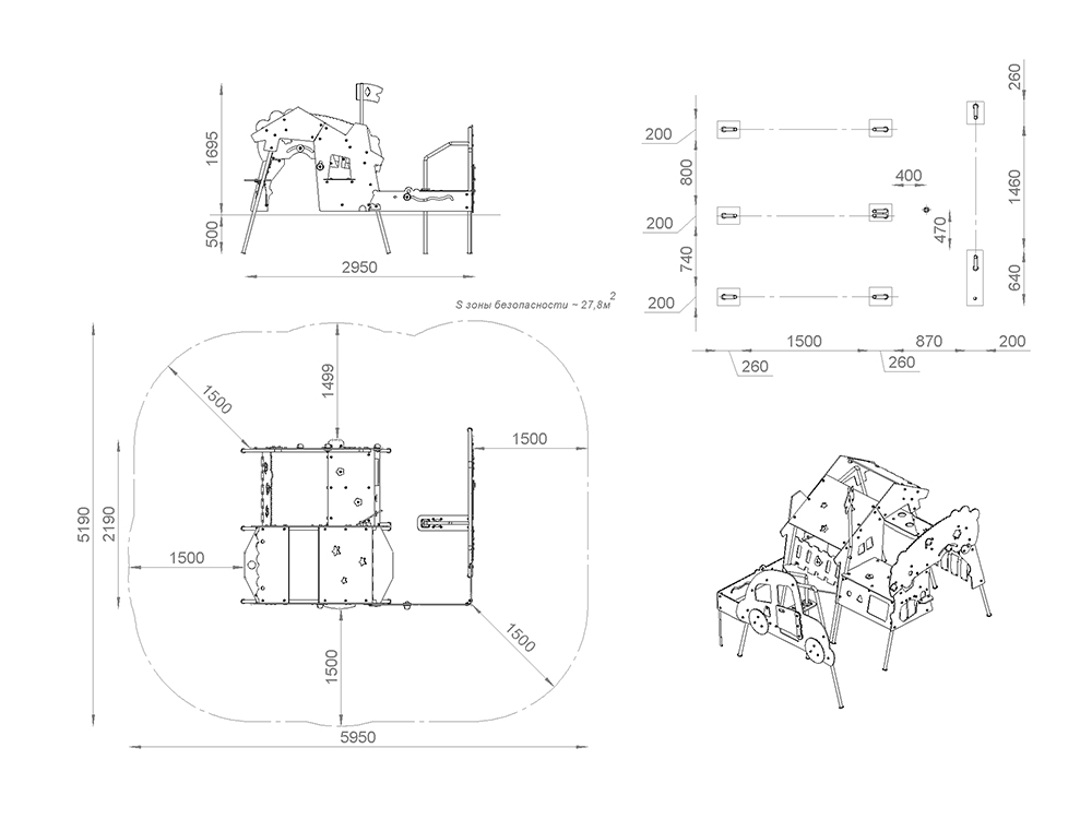 Расширенный детский комплекс - целый игровой городок для юных жителей. Здесь каждому найдется занятие по душе. Занимательные элементы декора внесут огромный вклад в развитие умственных способностей малышей. Сочетание цветов конструкции очень удачно для детского восприятия: созерцание зеленого цвета вызывает интерес к познанию мира; красный - вызывает подвижность; оранжевый - поднимает настроение; бирюзовый - несет креативность, благоприпятствует общению. Конструкция выполнена из металла и пластика.