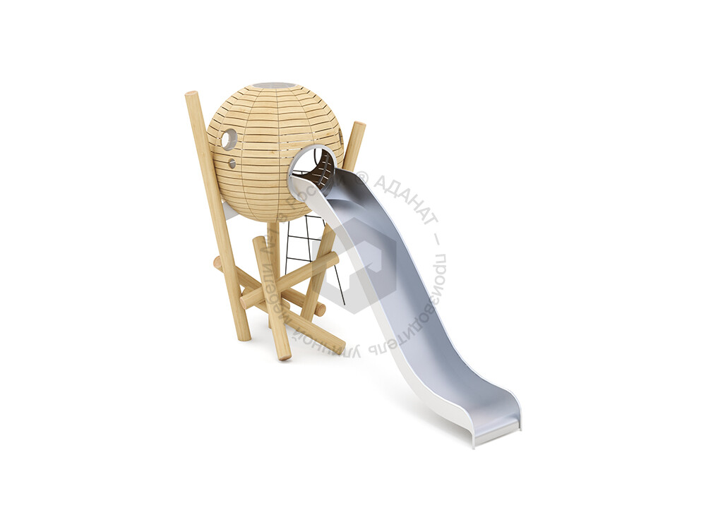 Детский домик «Сфера» Тип 3 - отличное решение для активного отдыха и физического развития детей: для подъема здесь предусмотрена прочная скалолазная сетка, развивающая координацию и ловкость, а для быстрого спуска — надежная металлическая горка с гладким покрытием для безопасного скольжения.