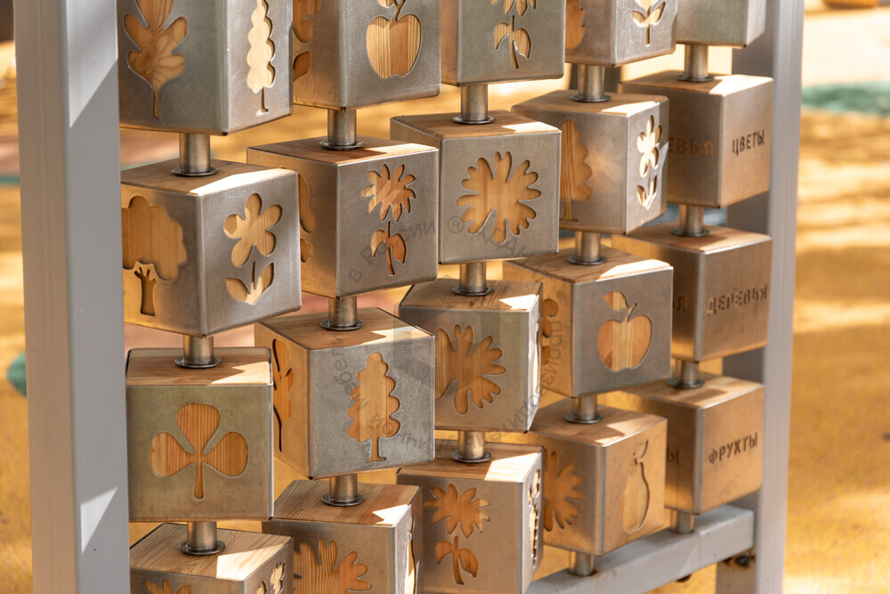 Кубики: клееный брус (лиственница / робиния), нержавеющая сталь;