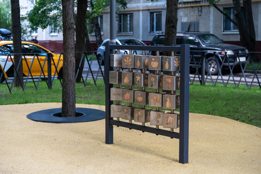 Игровая развивающая стойка с обучающими элементами. При помощи осязательного восприятия подвижных деталей дети с легкостью познают растительный мир.