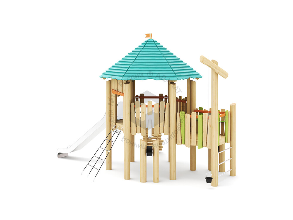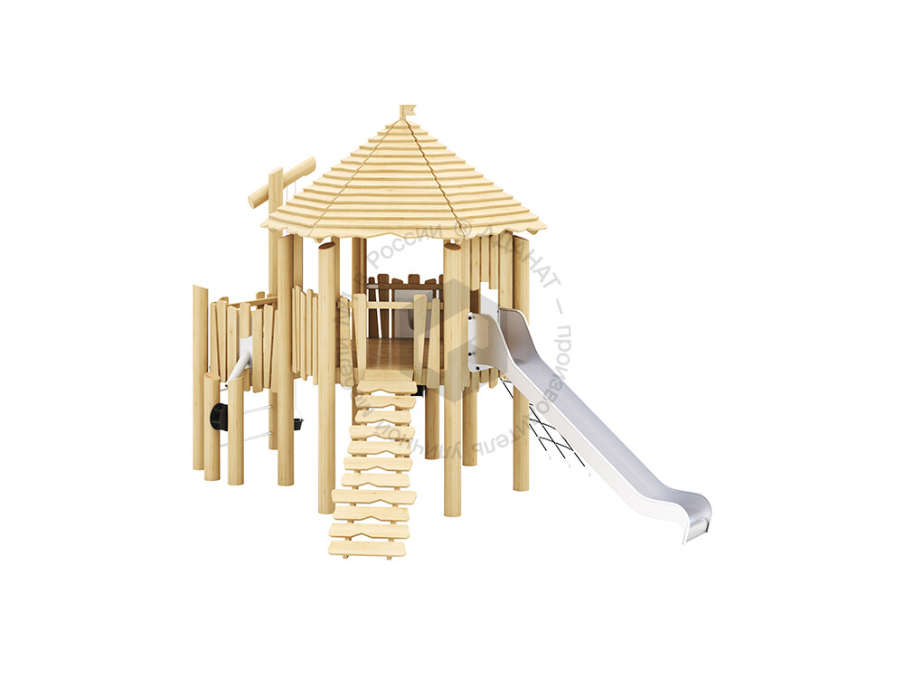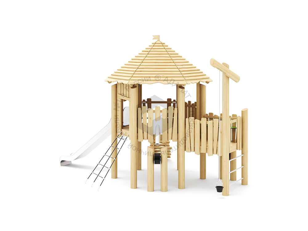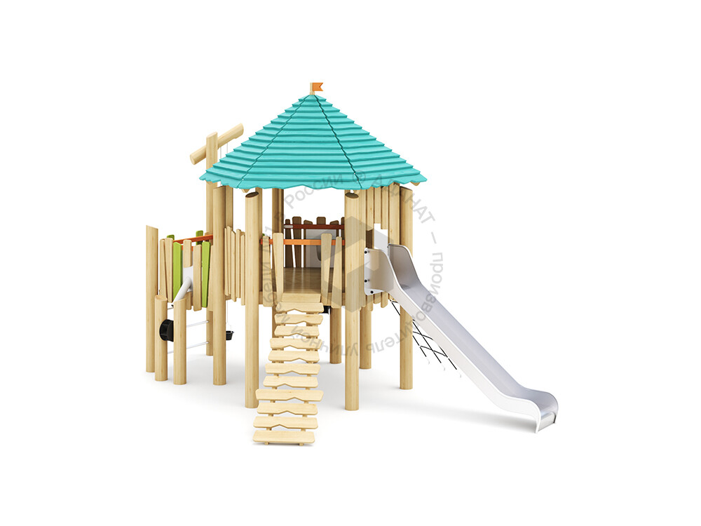 Комплекс способствует развитию ловкости, фантазии и социальных навыков ребенка. Оборудован мельницей и ведёрком для игры с песком, благодаря чему станет ещё более интересным и привлекательным для детей