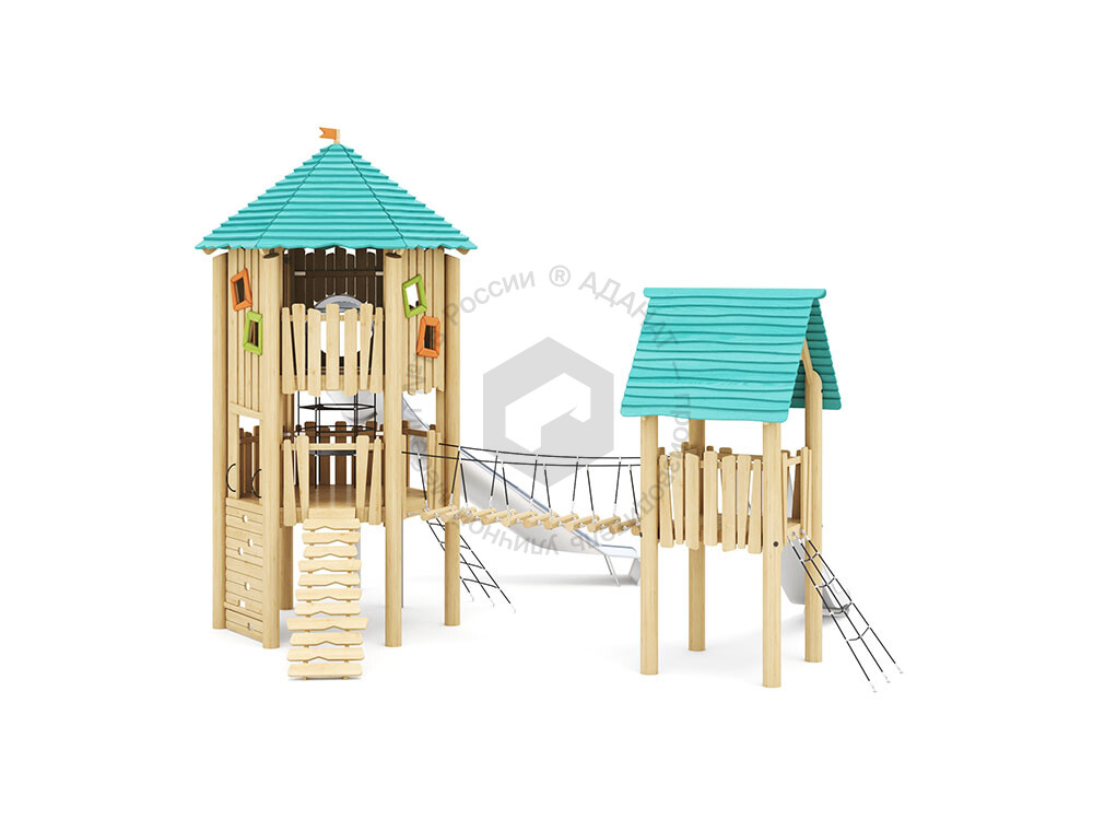 Детский городок с башней, горками и переходом развивает ловкость и координацию движений. Городок отлично подойдёт детям, которые не привыкли скучать на детской площадке.