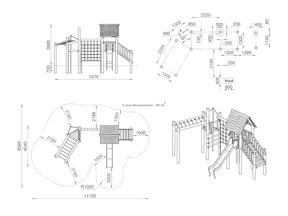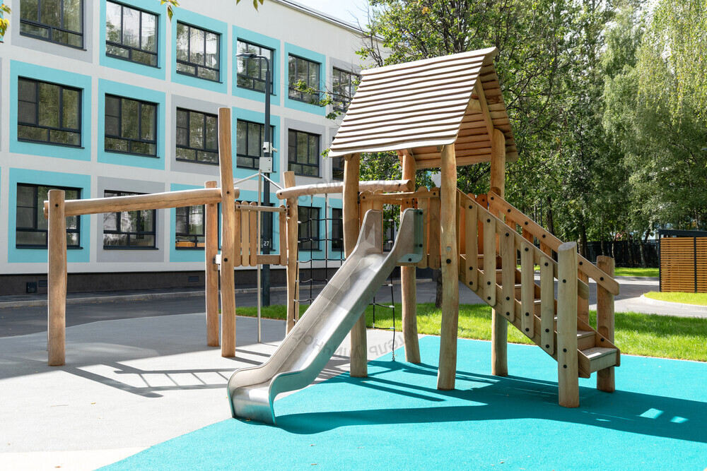 Детский городок с рукоходом и сеткой развивает ловкость, координацию движений. Комплекс отлично подойдёт детям, которые не привыкли скучать на детской площадке.
