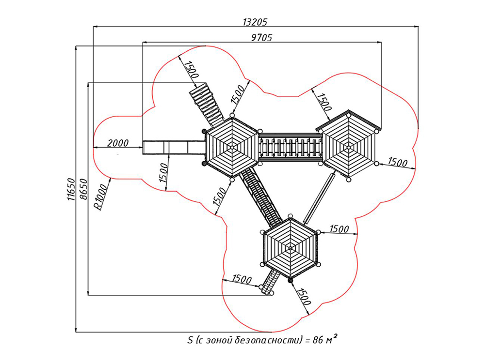 Сети, растяжки, мостик: канат армированный полипропилен шестипрядный, диаметр 16 мм;