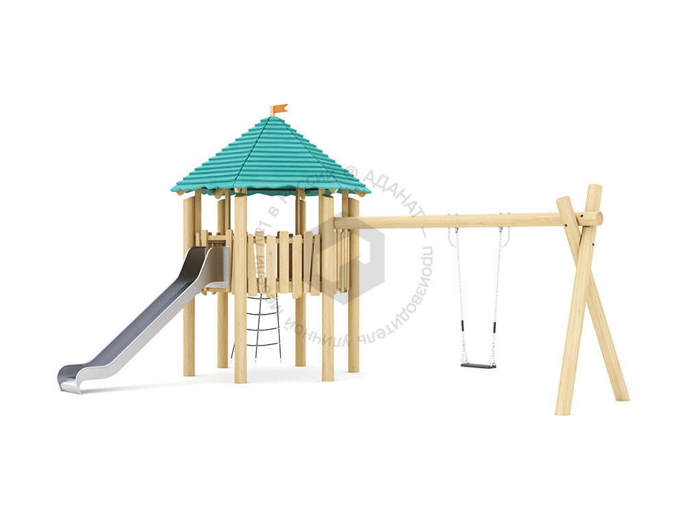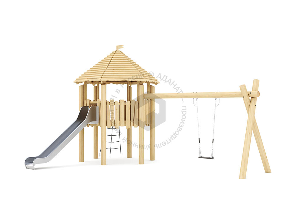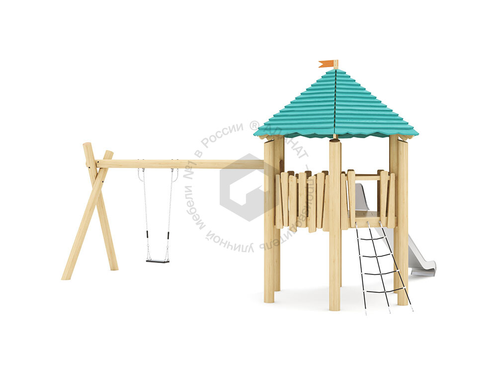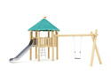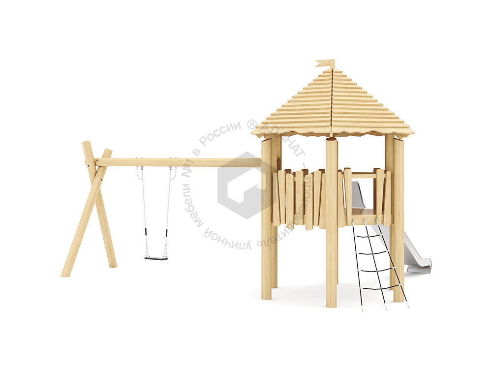 Игровая башня с горкой и качелями способствует развитию ловкости, фантазии и социальных навыков ребенка. Комплекс оборудован всем необходимым для увлекательной игры.