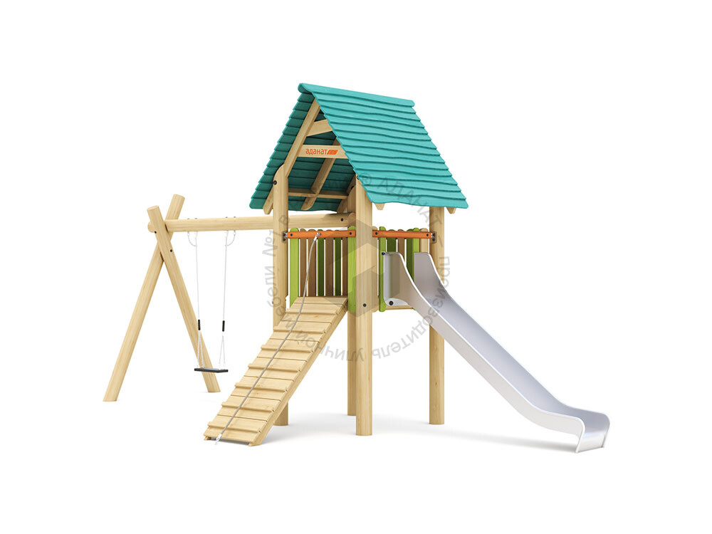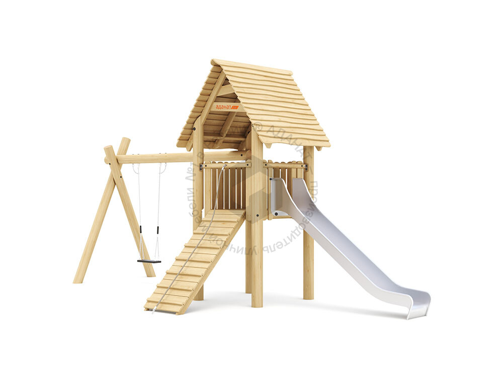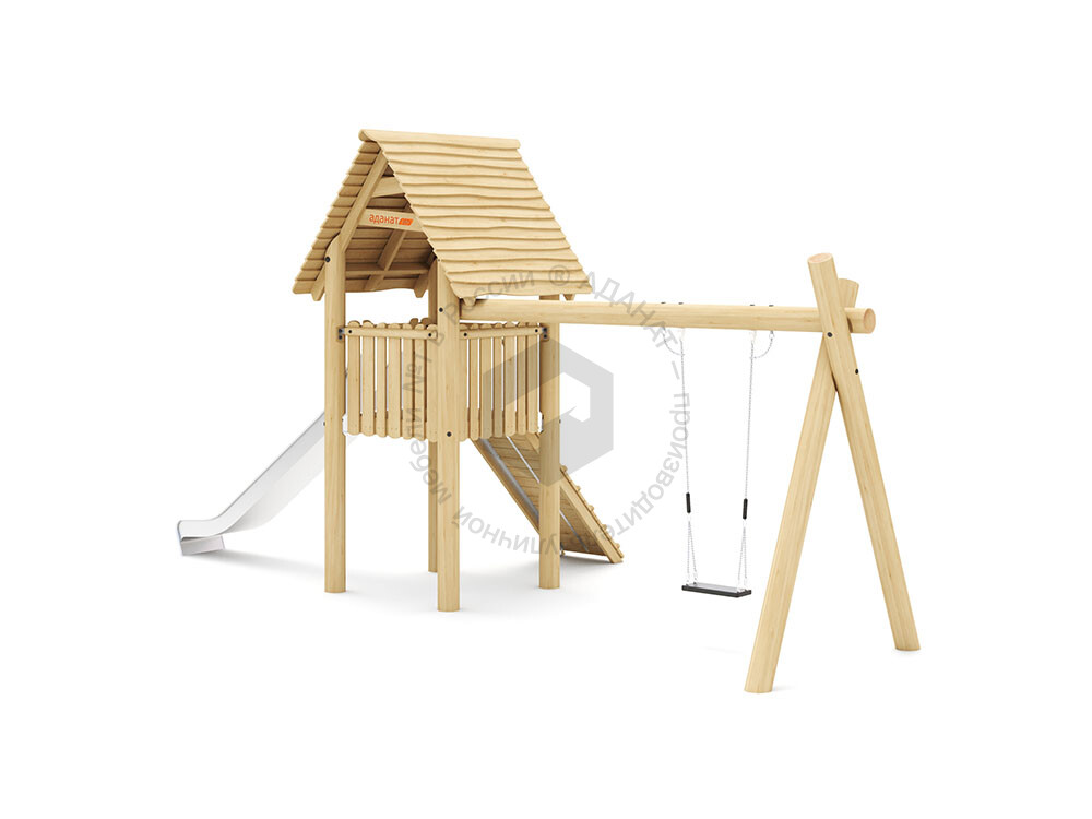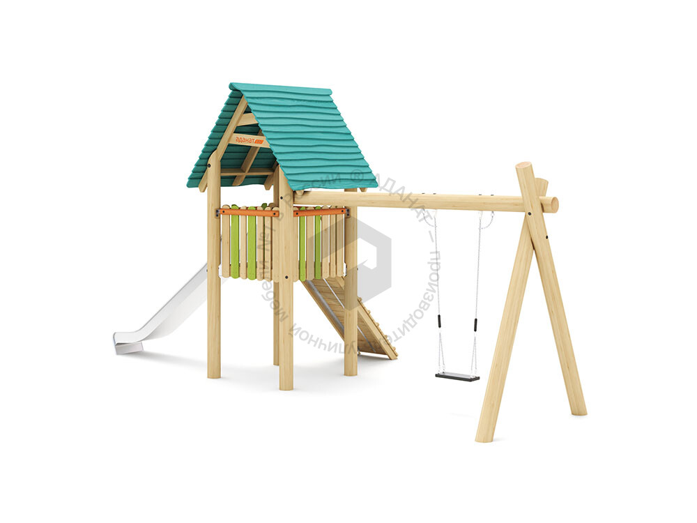 Игровой дом с качелями и горкой станет отличной идеей для досуга детей, которые не сидят на месте, а предпочитают подвижные игры. Такой домик развивает детское воображение, способствуют психологическому и физическому развитию. Уровень подъема 1500 мм.