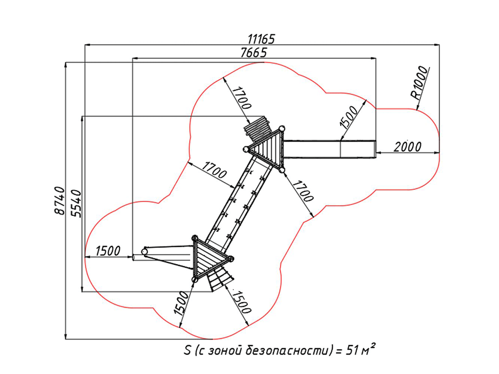 Треугольные платформы с горкой, переходом и сеткой развивают ловкость, координацию движений. Комплекс отлично подойдёт детям, которые не привыкли скучать на детской площадке.