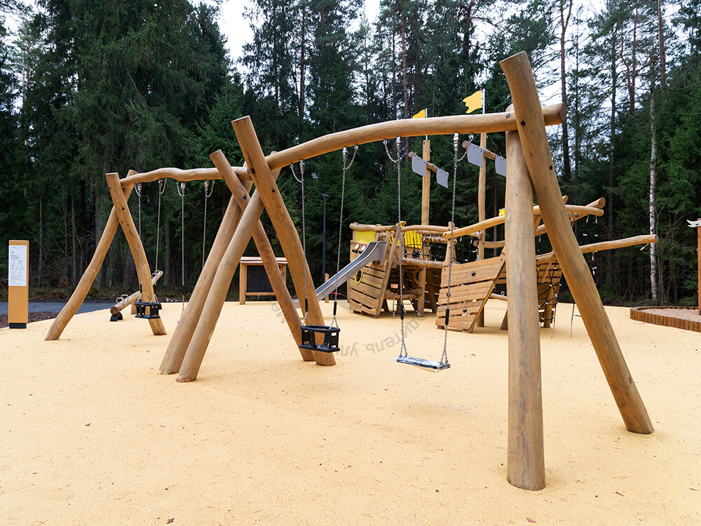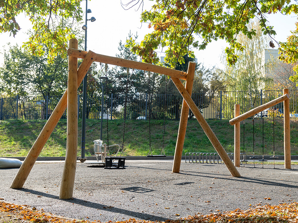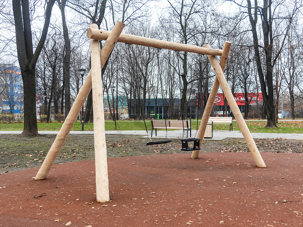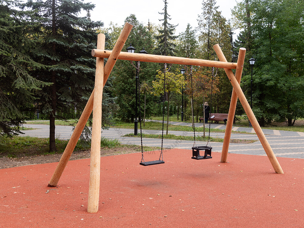 Классический вариант качелей, производимых в двух типах: с двумя сиденьями, с сиденьем и люлькой. Качели развивают не только ловкость, баланс и координацию, но и социально-коммуникативные навыки, очередность и сотрудничество между детьми.