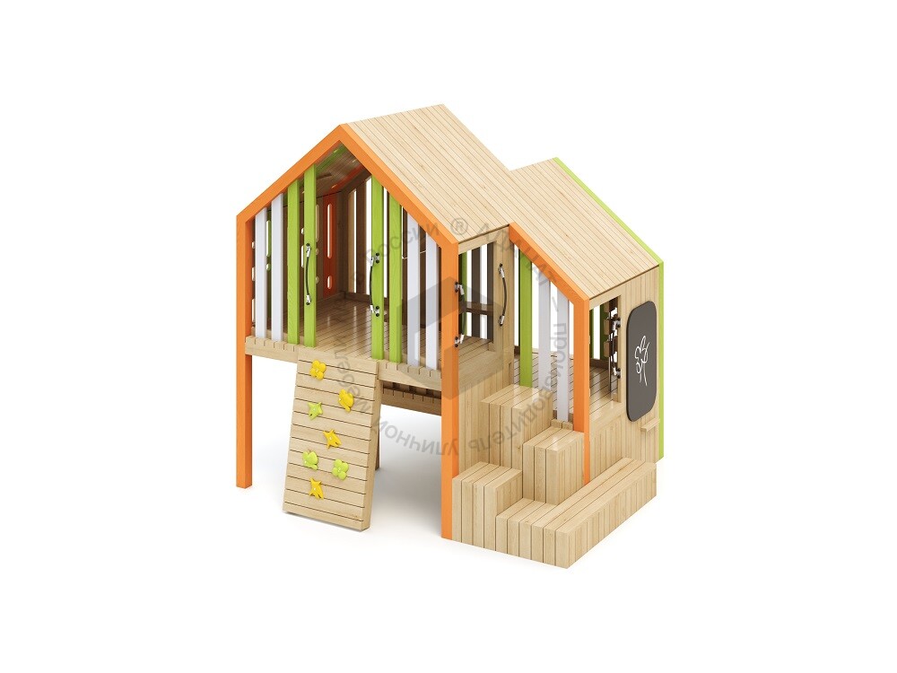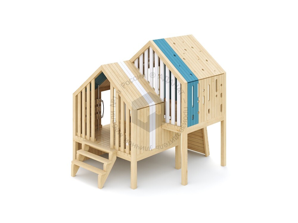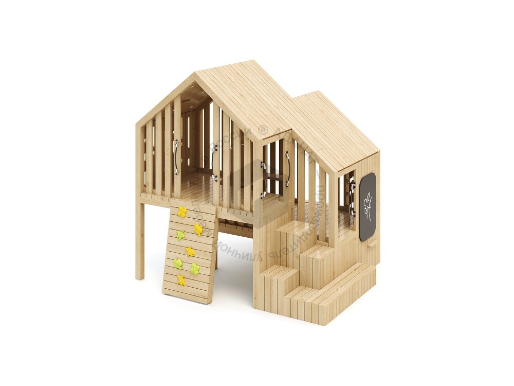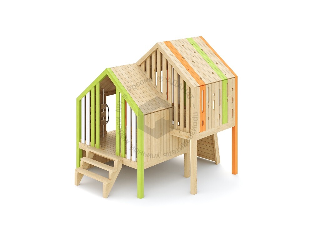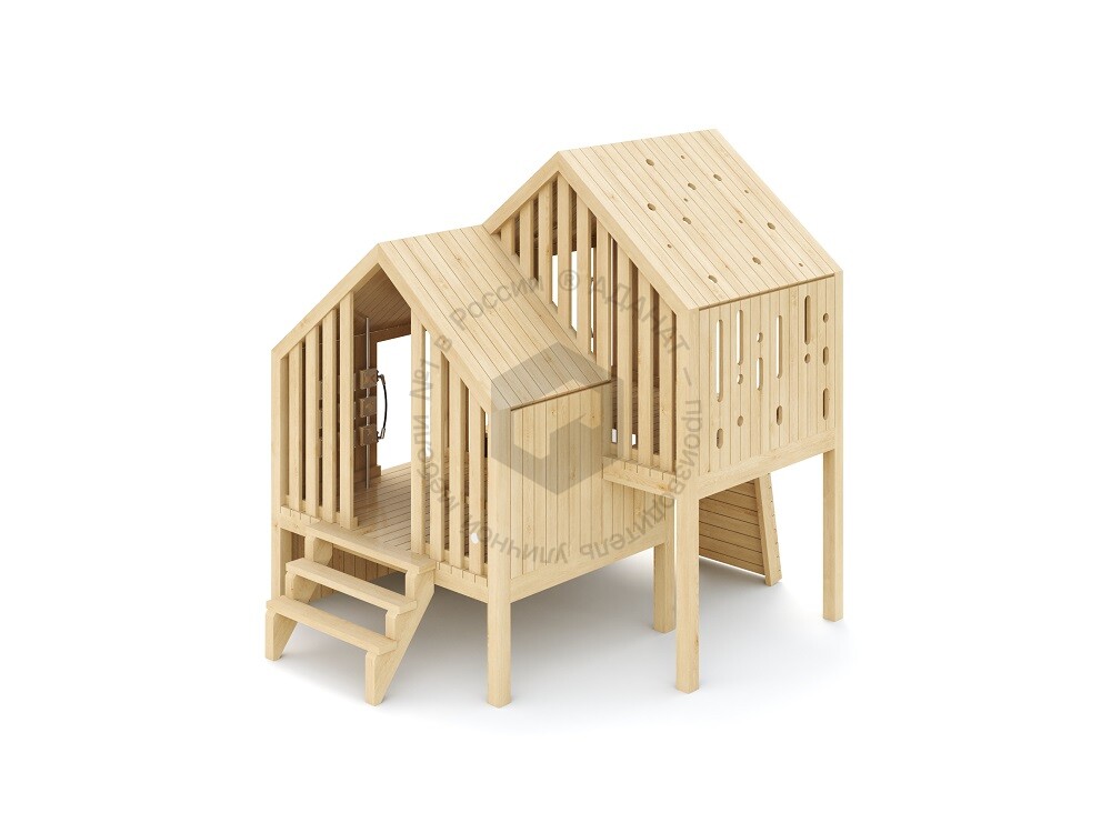 Деревянная беседка-домик для игр на улице. Предусмотрены лестница, ступени и зацепы для залезания внутрь. Изделие изготовлено из экологичных материалов и предназначено для развития моторики и сюжетно-ролевых игр. Станет ярким элементом любой детской площадки.