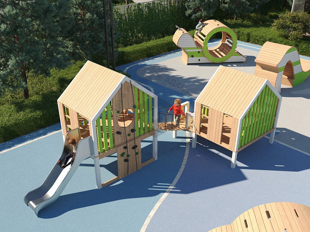 Игровой комплекс гармонично вписывается в пространство любой площадки. Его ключевые преимущества — безопасность и экологичность, так как для производства используются прочные натуральные материалы. Универсальный дизайн подходит для установки в парках, детских садах и жилых дворах. Такая конструкция надёжна и долговечна, что обеспечивает ей длительный срок службы.