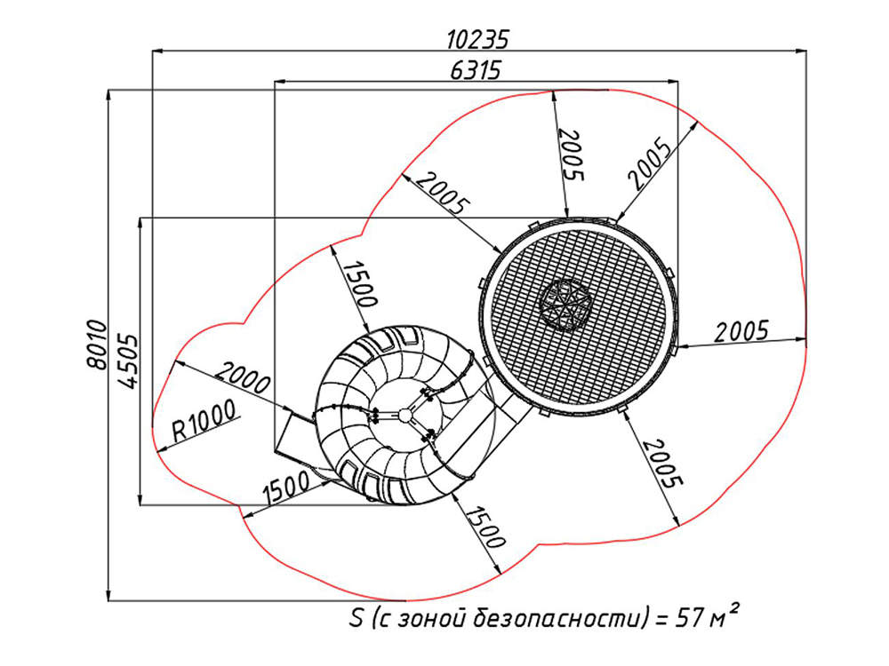 Крыша: сеть из стальных тросов.