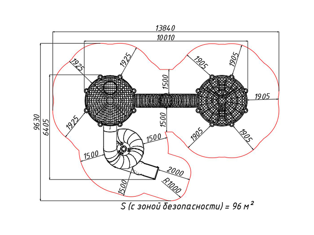 Масштабный комплекс для детей от 6 лет, который состоит из двух башен, соединенных между собой сетчатым лазом. Конструкция включает в себя лазательные сети и большую винтовую горку, создавая для детей захватывающую атмосферу. В каждой башне расположено несколько игровых ярусов.