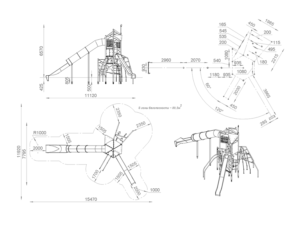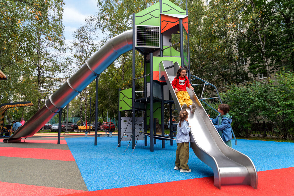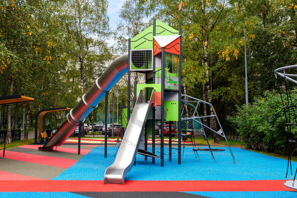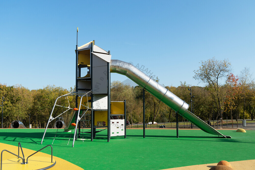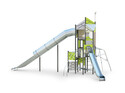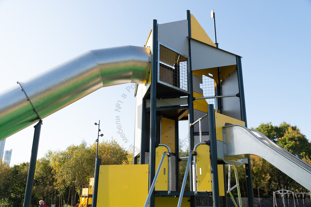 Функциональная игровая башня «Калейдоскоп» - целый лабиринт развлечений для детей. Конструкция состоит из нескольких этажей, на каждый из которых можно подняться при помощи многообразных спортивных элементов: рукоход, различные поручни, лесенки. Главной достопримечательностью площадки является горка-труба. Помимо огромных ощущений от скольжения, дети тренируют чувство пространства и баланса. Набраться смелости и спуститься по крутому тоннелю добавляет приятное ощущение достижения. Язык у горки очень длинный, что придает чувство безопасности в конце спуска. Яркая цветовая гамма обязательно привлечет внимание каждого ребенка.