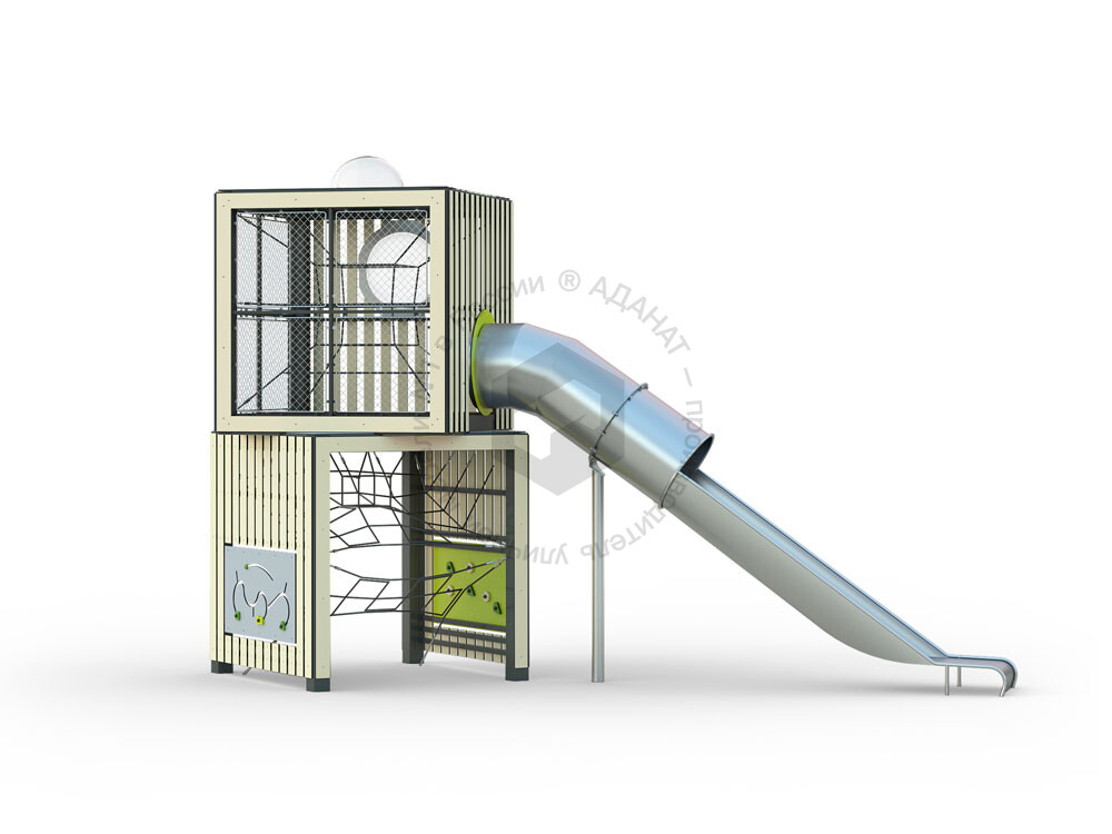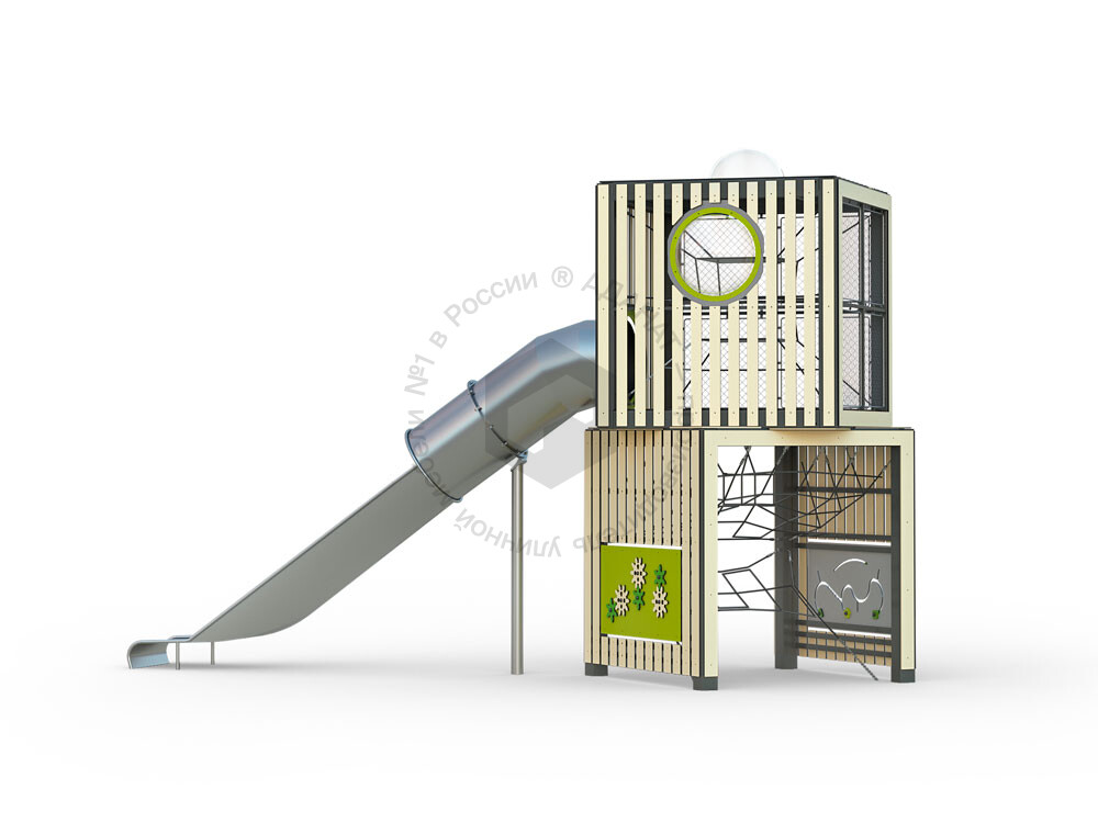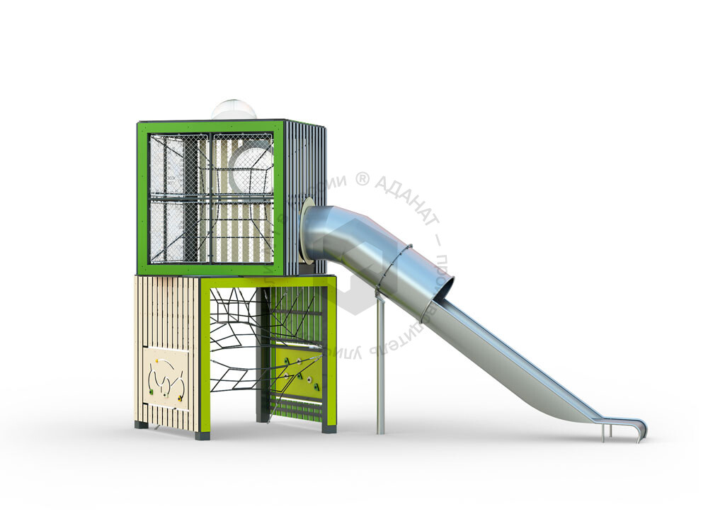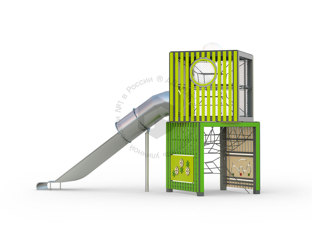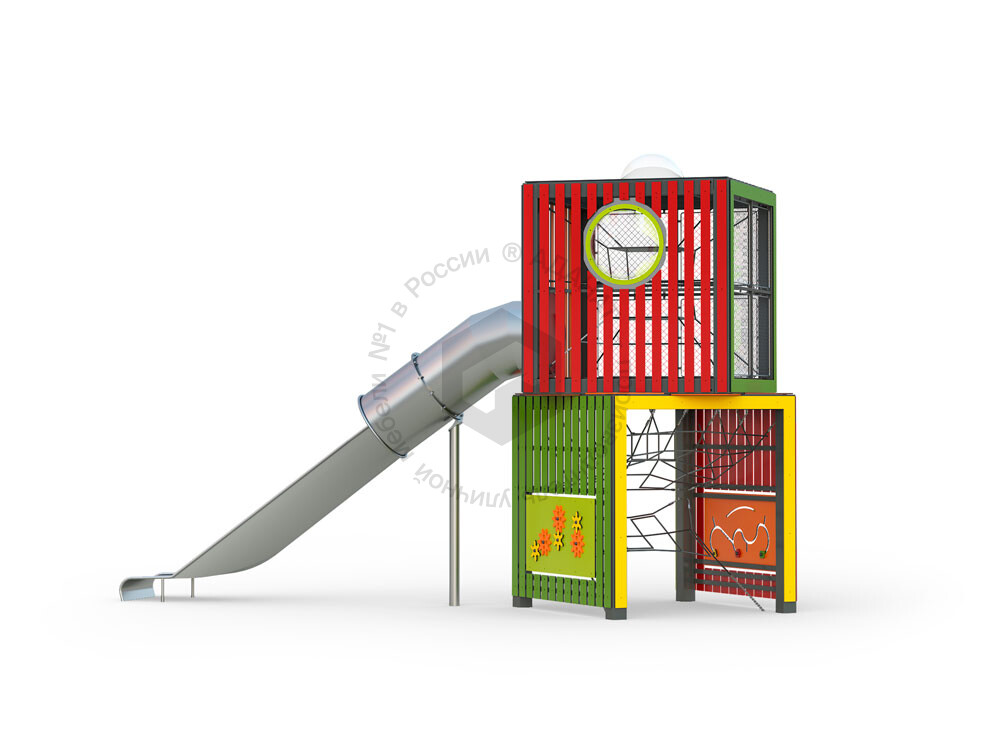 Детская игровая башня для лазания «Куб» - отличный тренажер для развития ловкости, координации, мышечной силы, а также пространственной осведомленности. Яркий дизайн в совокупности со спортивными элементами для лазания: различные паутины, сетчатая труба, перекладины, прямая горка-труба , а также элементы логических игр.