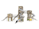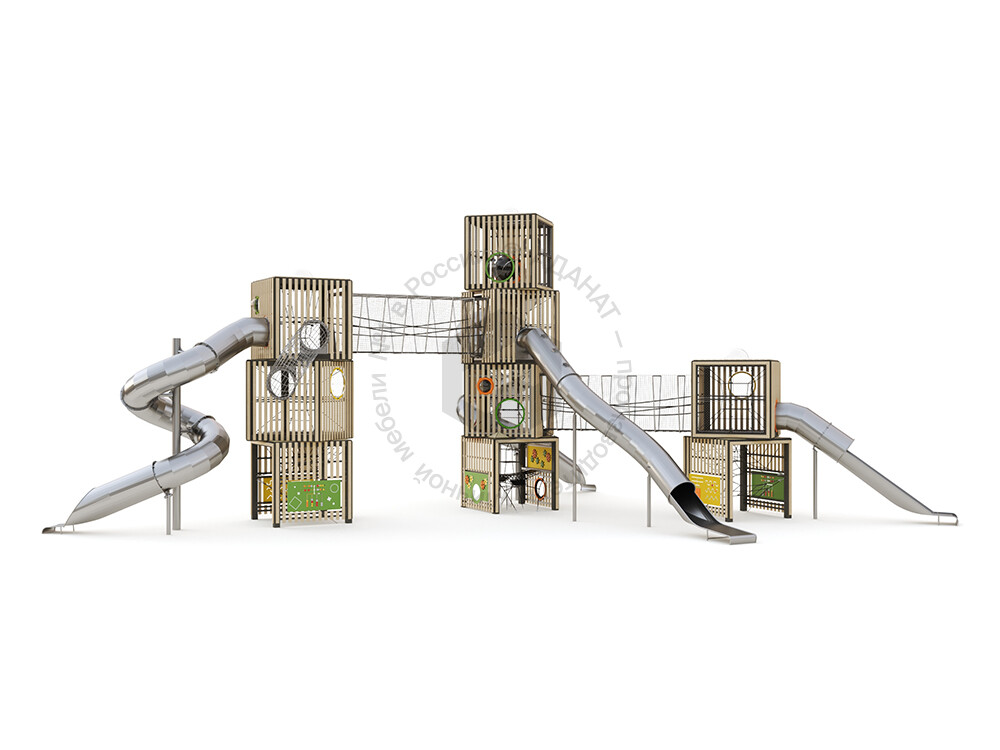 Игровая башня «Куб-6» ЭКО - это отличный тренажер для развития ловкости, координации, мышечной силы, а также пространственной осведомленности. Изделие впечатляет своим размером, оснащено несколькими горками, сетчатой трубой, горизонтальными тоннелями-переходами и различными интерактивными панелями на первом уровне.