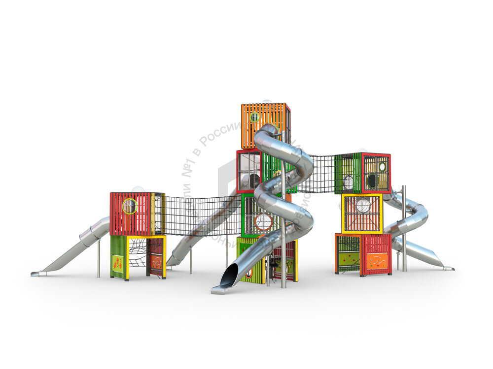 Детская игровая башня для лазания «Куб» - отличный тренажер для развития ловкости, координации, мышечной силы, а также пространственной осведомленности. Яркий дизайн в совокупности со спортивными элементами для лазания: различные паутины, сетчатая труба, перекладины, изогнутая горка-труба, а также элементы логических игр.