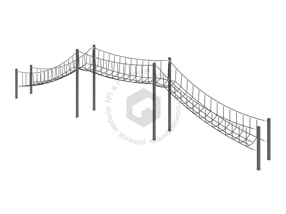 Веревочный мост вдохновляет и стимулирует детей играть, исследовать пространство и выполнять физические упражнения. Канатные комплексы предлагают множество возможностей для совместных игр, обучения через взаимодействие. Основание выполнено из стали с порошковой окраской, канат - армированный полипропилен.
