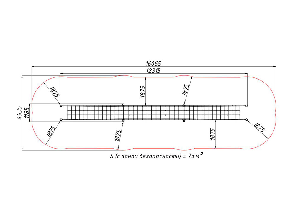 Канат: армированный полипропилен шестипрядный, диаметр 16 мм.