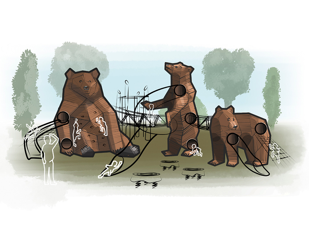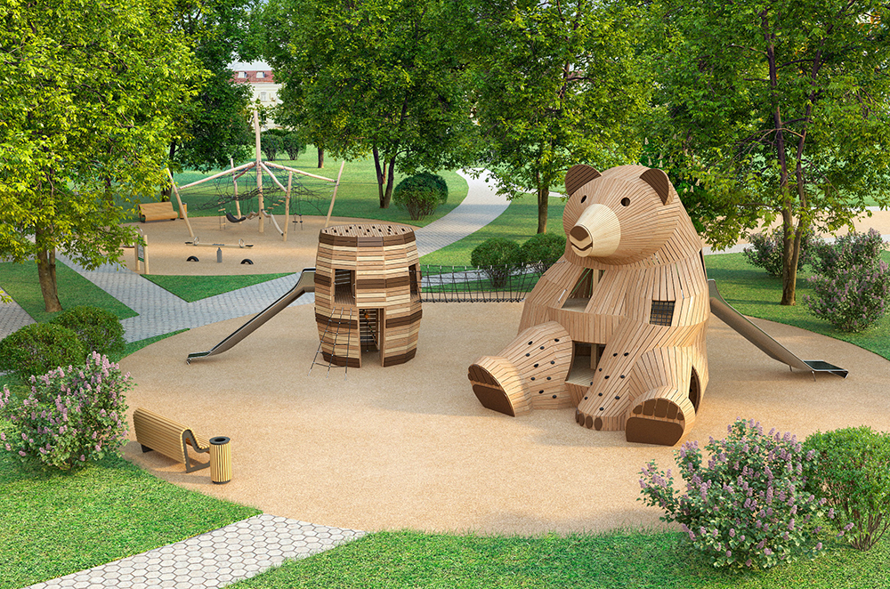 Комплекс «Медведи» — это история о заботе, игре и исследовании. Здесь дети могут лазать, прятаться, придумывать приключения и чувствовать себя частью природы. Площадка создаёт атмосферу тепла и единения, вдохновляя семьи проводить время вместе и возвращаться снова и снова.