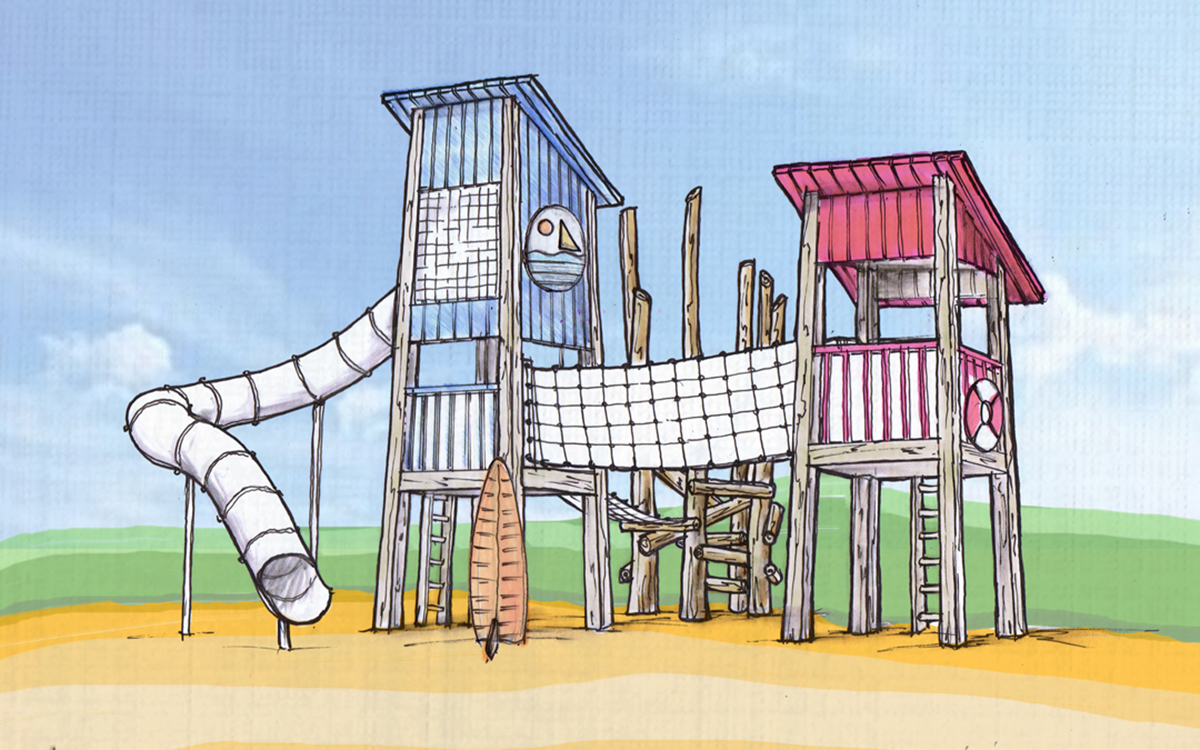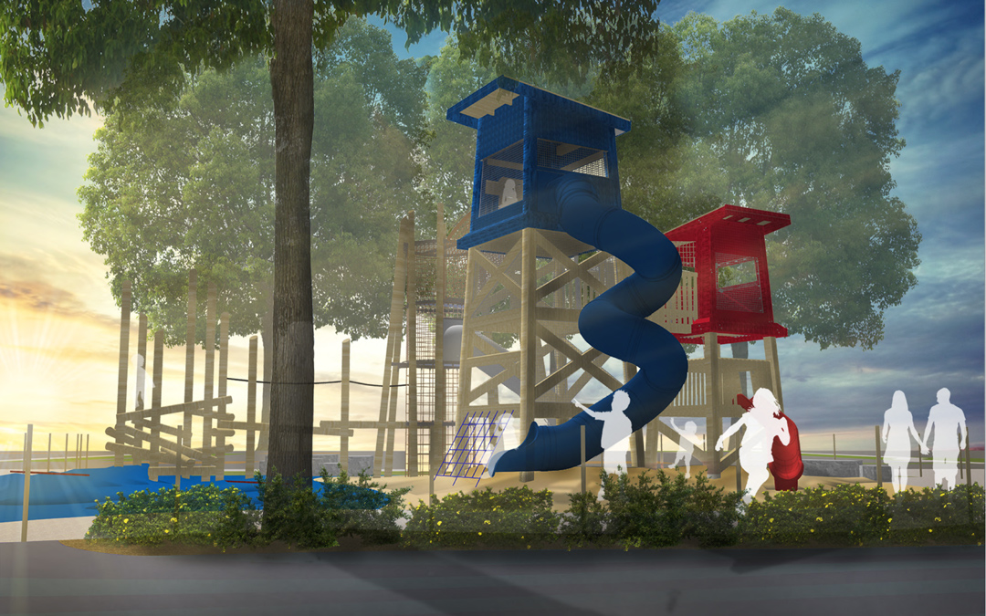 Комплекс «Вышки» — это впечатляющий архитектурный ансамбль, где две башни зеркально отражают друг друга, а между ними формируется круг, создающий цельное и гармоничное пространство. Вместе вышки и соединяющее их кольцо формируют конструкцию, которая становится больше, чем просто сумма её частей, приглашая детей исследовать, играть и взаимодействовать.