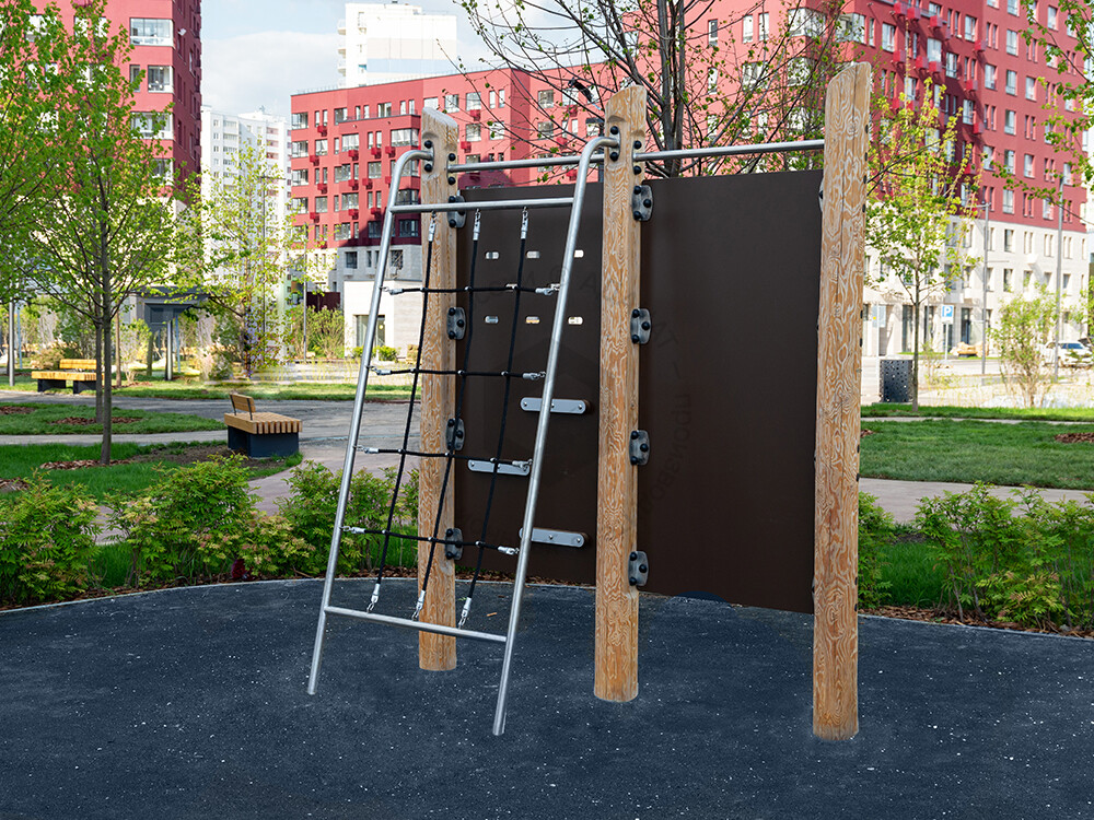 Стенка с сеткой служит для развития силы и выносливости. Может стать дополнением к любому спортивного комплексу нашего производства.