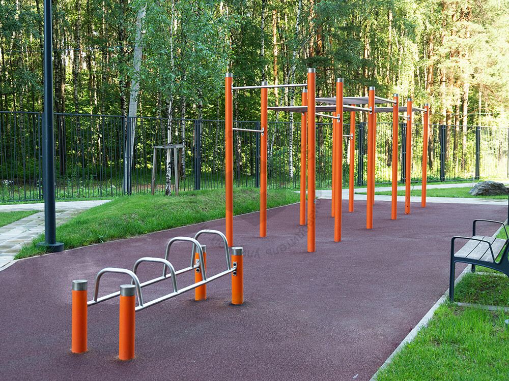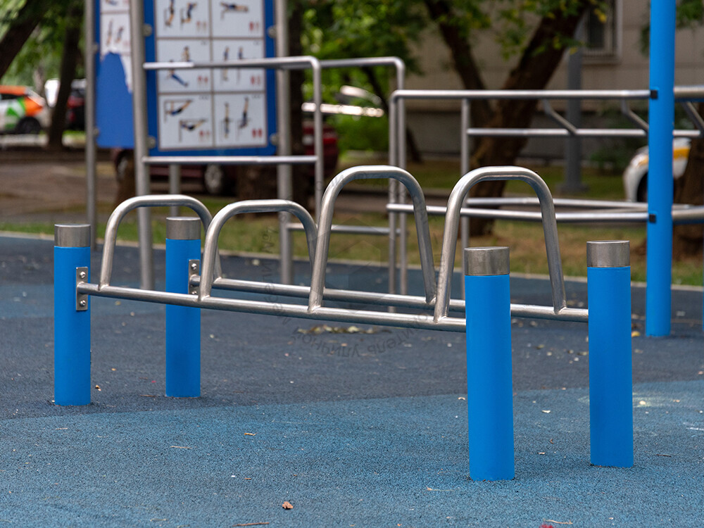 Скамья для отжиманий с упорами различной высоты. Может использоваться в составе любого спортивного комплекса нашего производства.