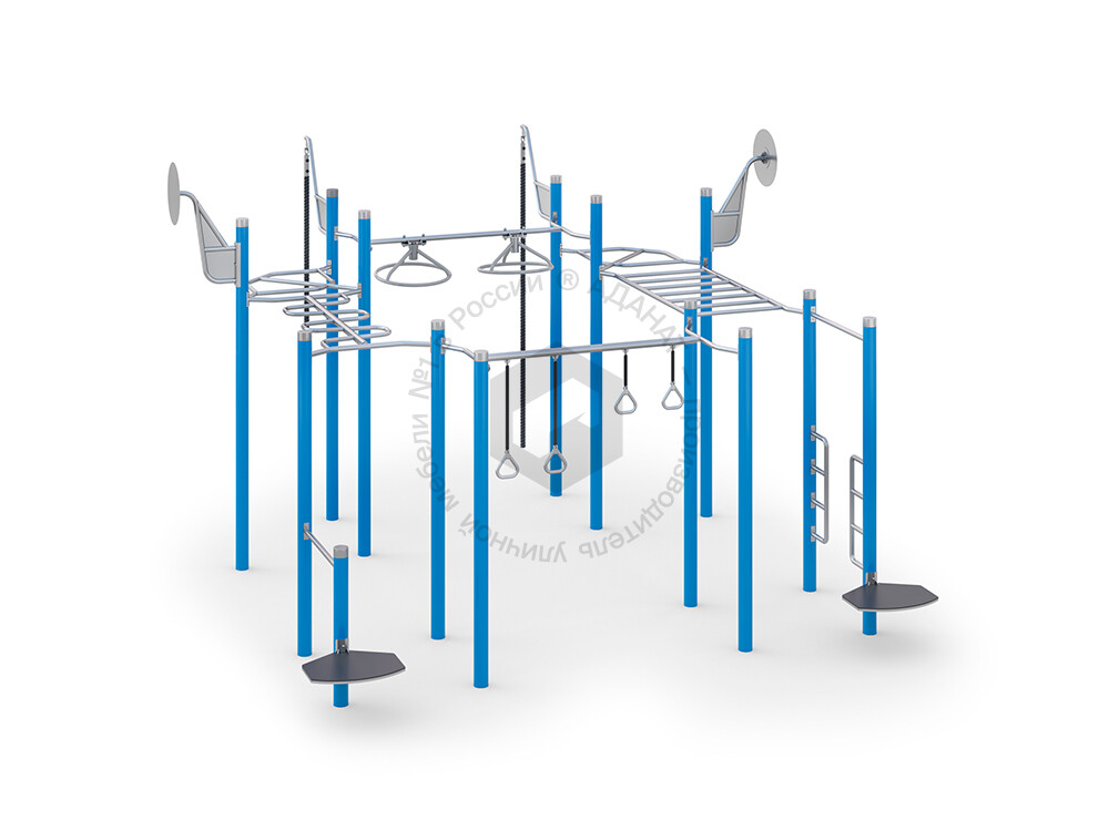 Многофункциональный спортивный комплекс замкнутой конструкции. Включает в себя различные снаряды для занятия на открытом воздухе. Служит для развития силы и выносливости.