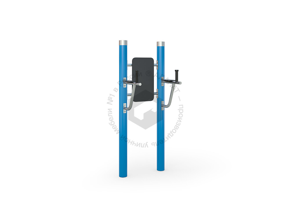 Оборудование предназначено для выполнения подъёма ног в упоре на предплечьях. Конструкция включает жёсткий упор для спины, исключающий раскачивание корпуса и компенсаторную нагрузку на поясничный отдел, что снижает риск травм. Подходит для выполнения «уголка», подъёмов прямых и согнутых ног.
