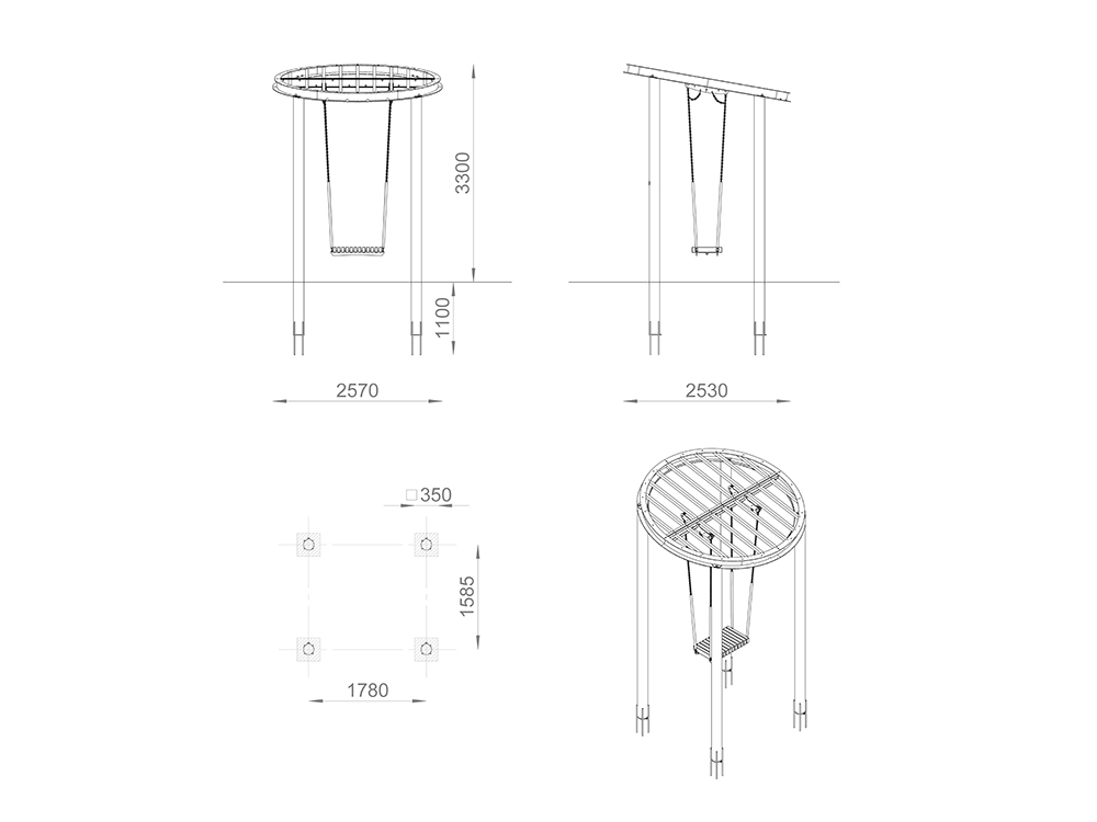 Основание качелей выполнено из металла, а крыша из металла и древесины. Дополнительно могут оснащаться поликарбонатом для комфортного использования в любую погоду.