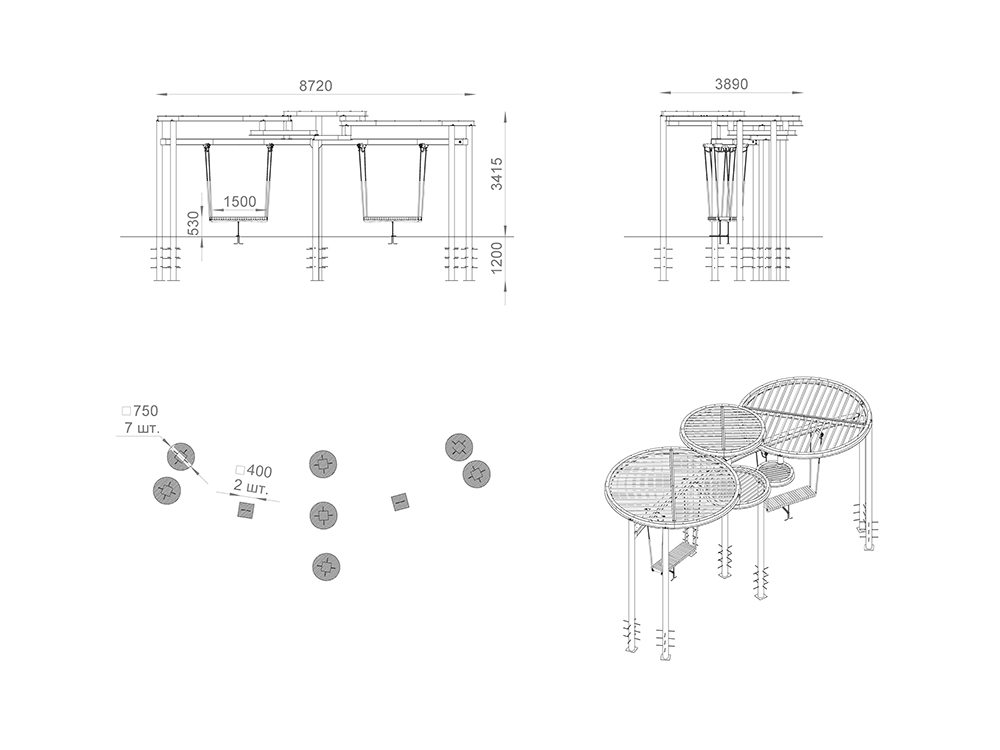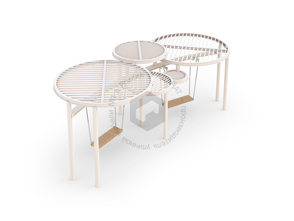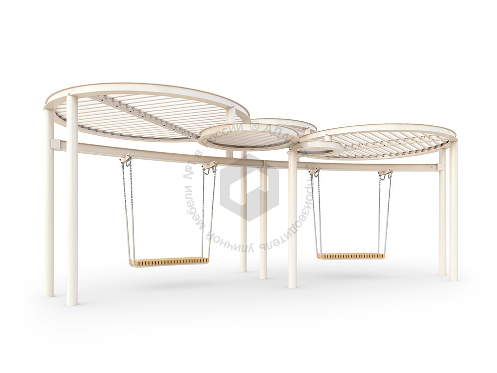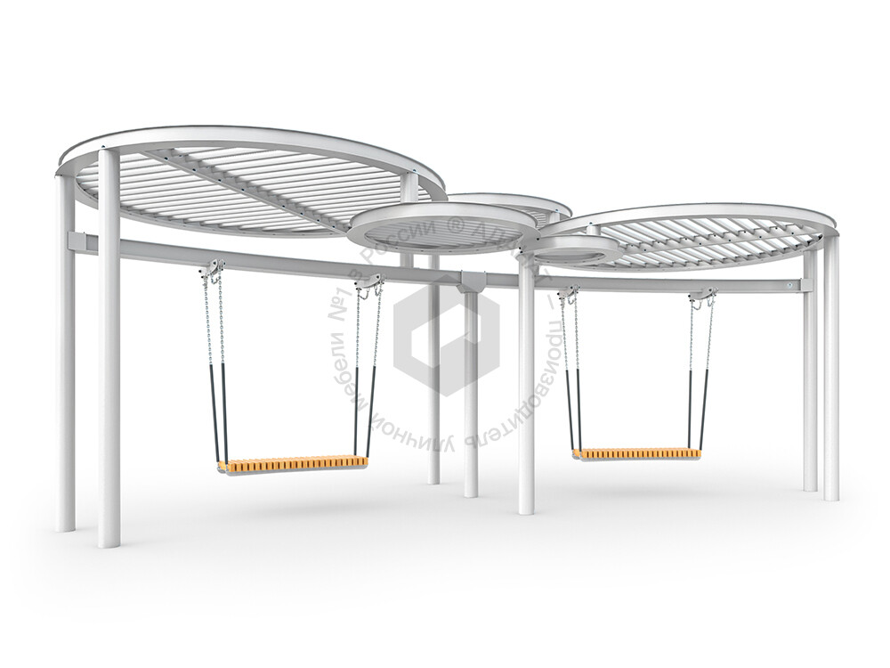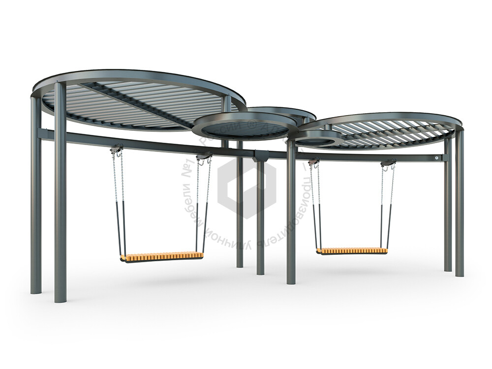 Стильные качели с прочным металлическим навесом, который защищает от солнца. Металлическая конструкция гарантирует долговечность и устойчивость, делая эту модель отличным выбором для обустройства парков, скверов и жилых дворов.