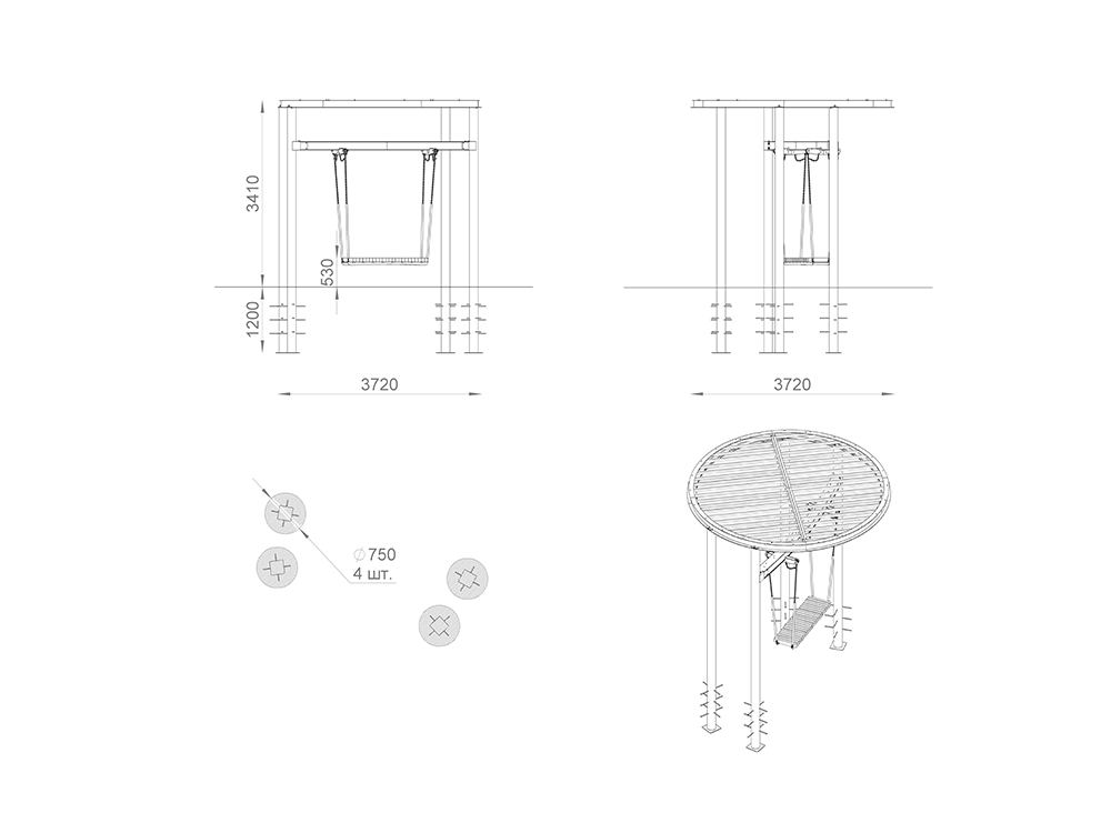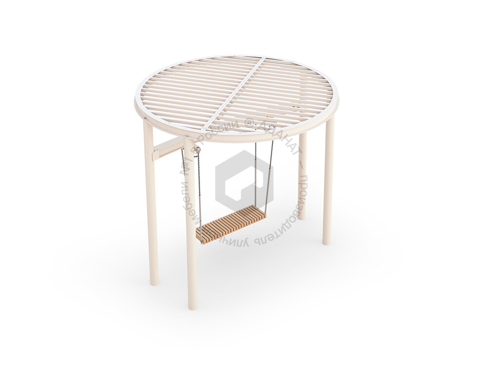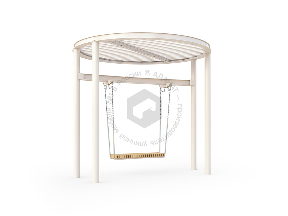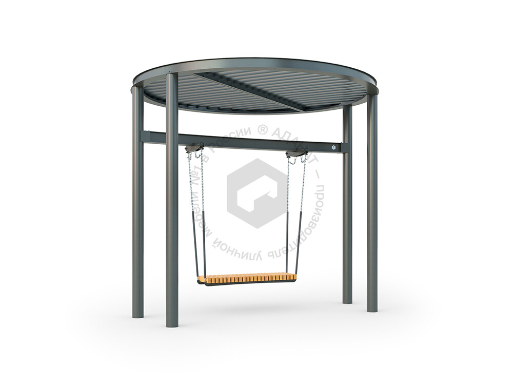 Стильные качели с прочным металлическим навесом, который защищает от солнца. Металлическая конструкция гарантирует долговечность и устойчивость, делая эту модель отличным выбором для обустройства парков, скверов и жилых дворов.