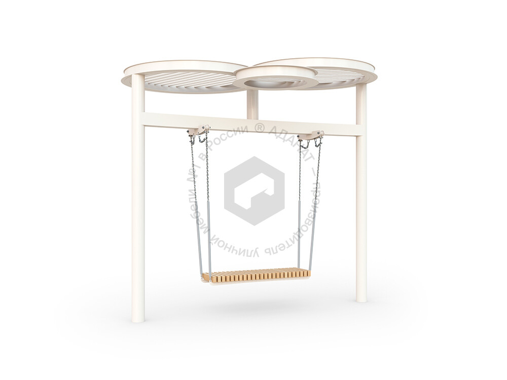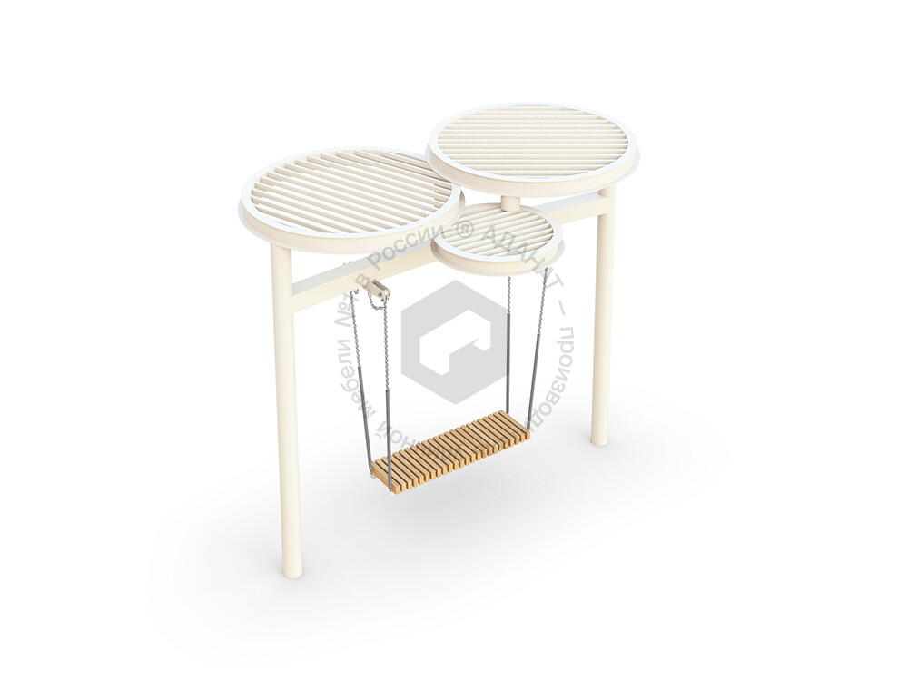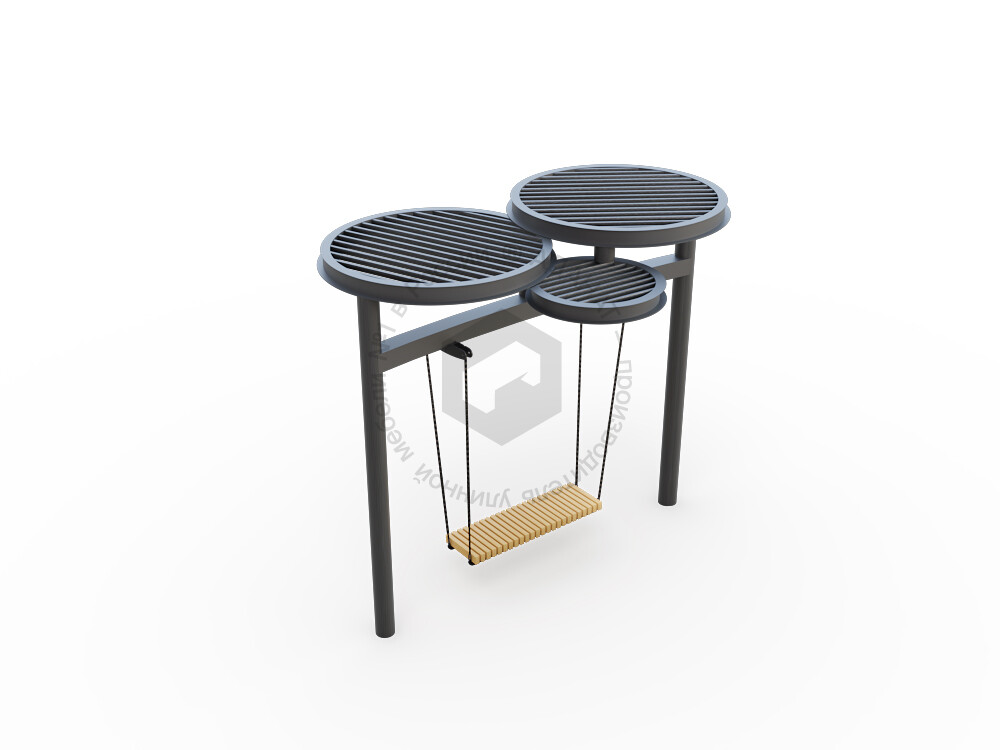 Стильные качели с прочным металлическим навесом, который защищает от солнца. Металлическая конструкция гарантирует долговечность и устойчивость, делая эту модель отличным выбором для обустройства парков, скверов и жилых дворов.