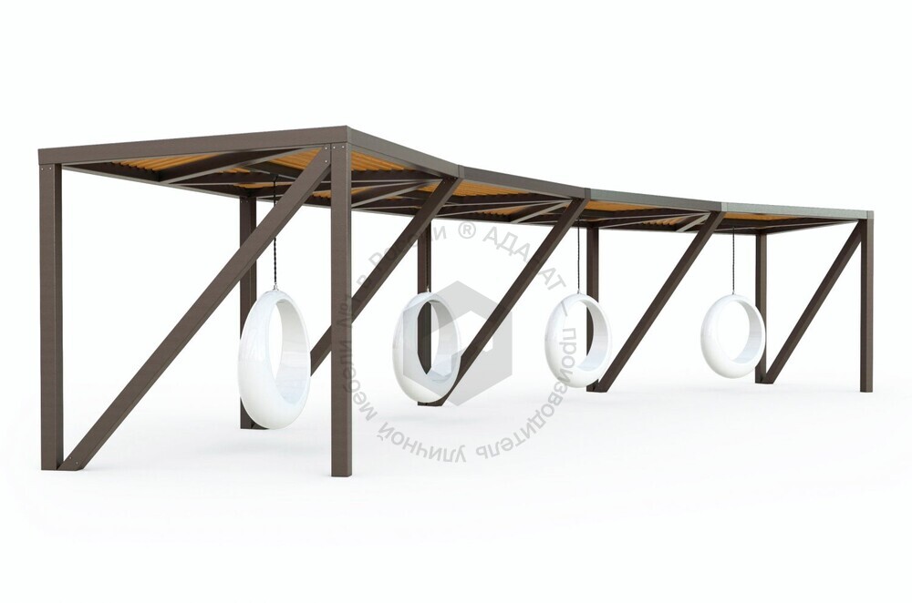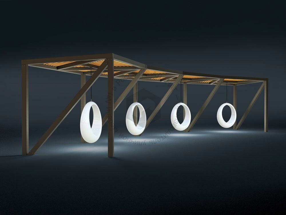 Современный дизайн и качественные материалы — это про серию «Омега». Каркас изготавливается из металла, на крыше деревянные ламели из сосны или лиственницы. Проект подиума рассчитывается индивидуально.