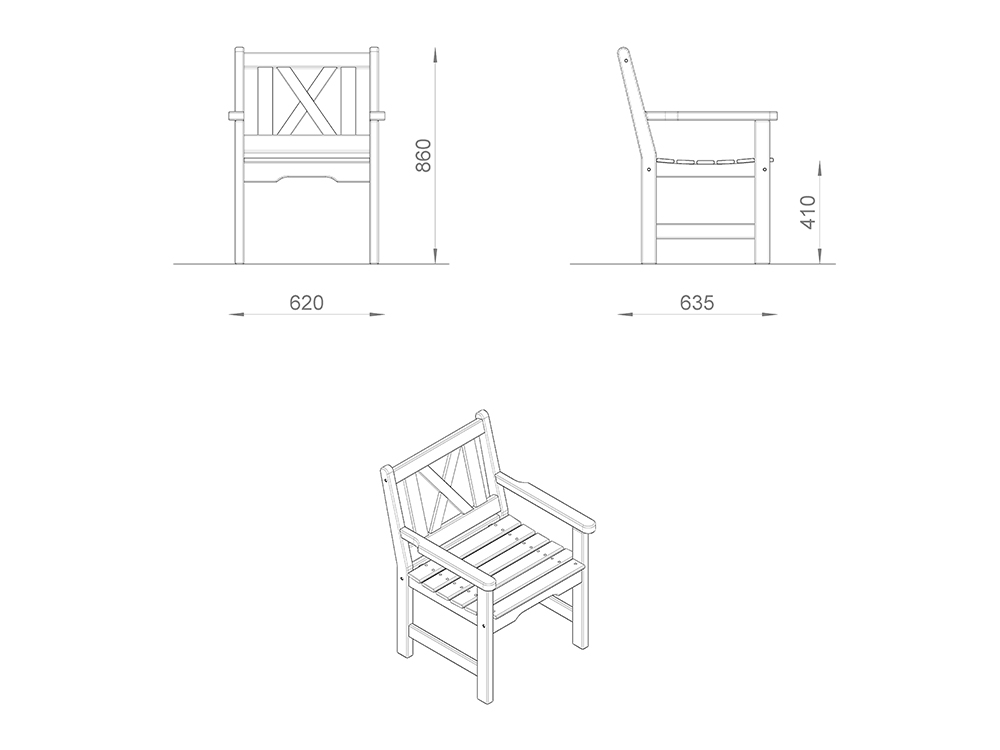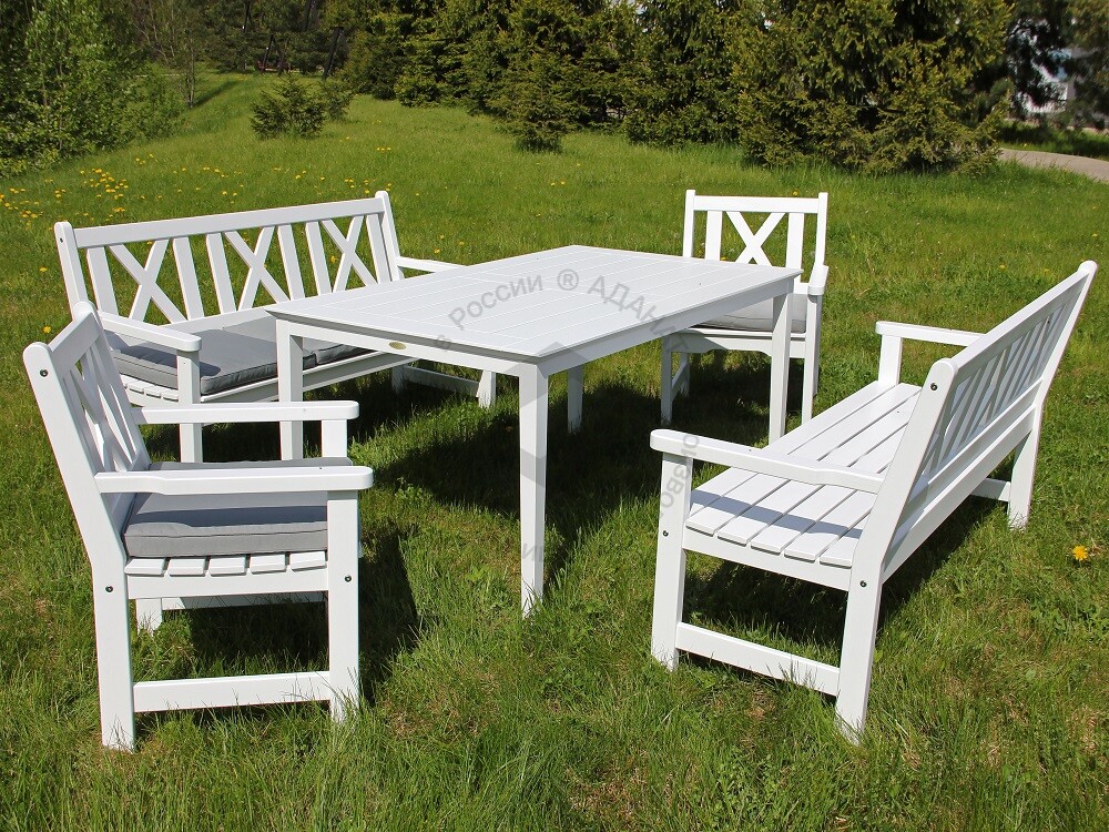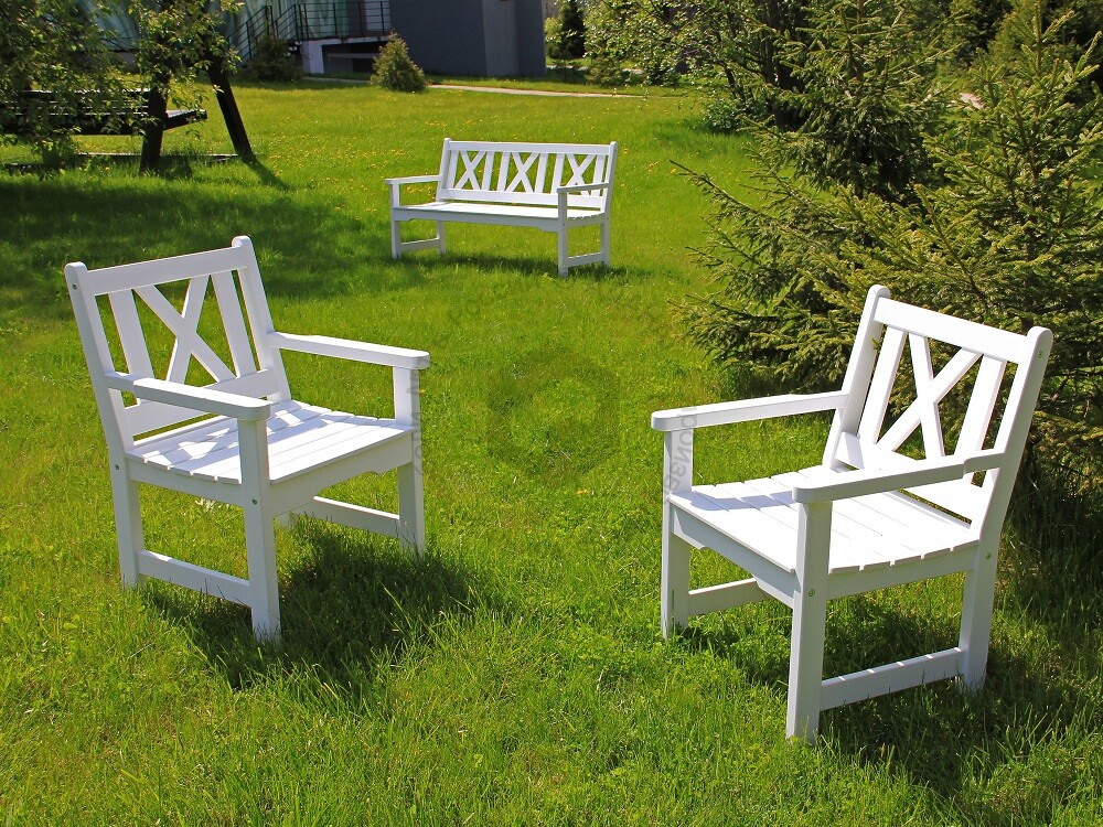 Настил/Спинка: сосна/лиственница. Покрытие: 1 слой пропитки стандартного цвета*, 2 слоя лака.