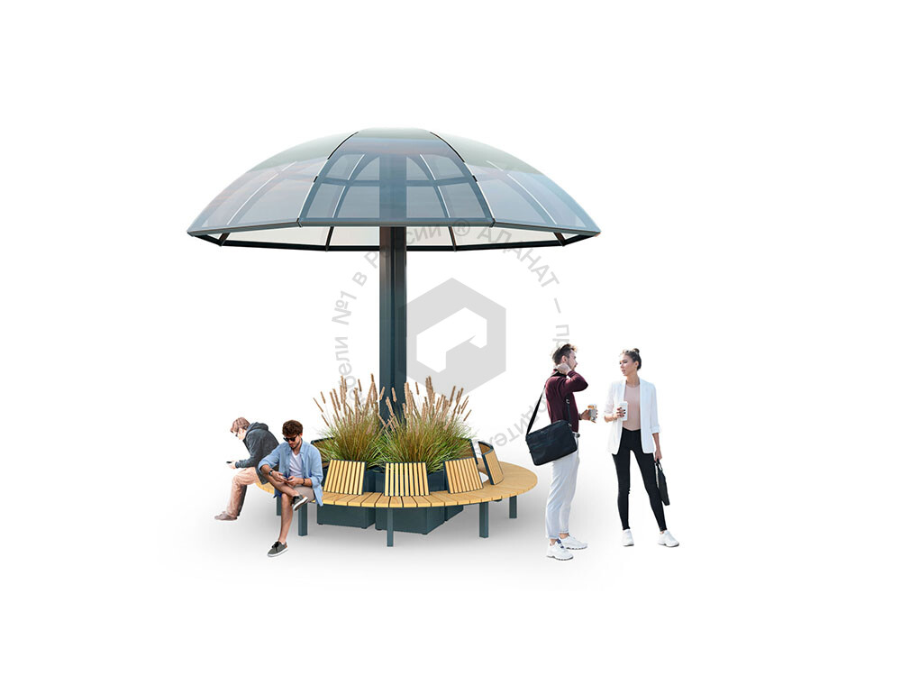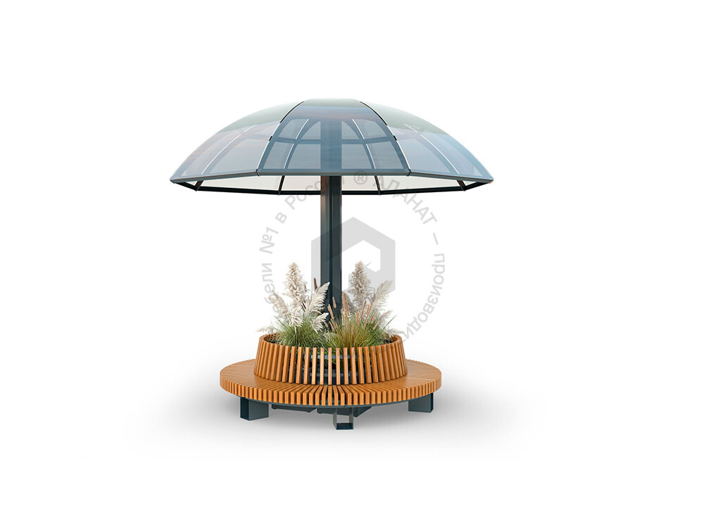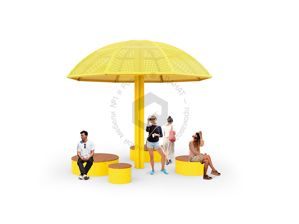 Солнцезащитный навес в виде зонта – отличное решение для оформления зон отдыха на открытых площадках. Представляет собой металлическую конструкцию с навесом. Изделие выполнено в минималистичном дизайне и имеет компактные размеры.