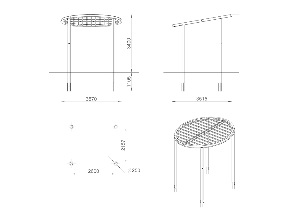 Пергола «Круг» — это стильная и функциональная архитектурная конструкция для создания уютных тенистых зон. Идеально подходит для парков, скверов и общественных пространств, добавляя эстетический акцент и защищая от солнца. Легкая и прочная конструкция выполнена из высококачественных материалов, что обеспечивает долговечность и надежность.