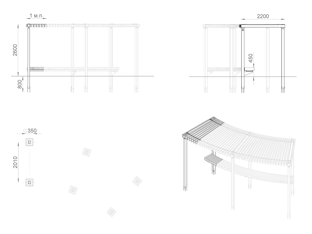 Пергола сочетает стиль и практичность. Конструкция из качественных материалов служит для комфортного отдыха на свежем воздухе. Плавные линии скамейки и перголы делают изделие не только функциональным, но и эстетически привлекательным. Подходит для парков, скверов и дворовых территорий.