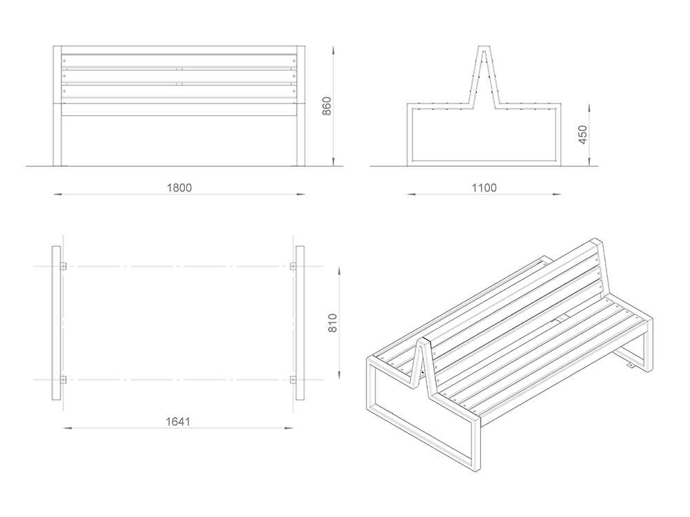 Настил/Спинка: сосна/лиственница. Покрытие: 1 слой пропитки стандартного цвета**, 2 слоя лака.