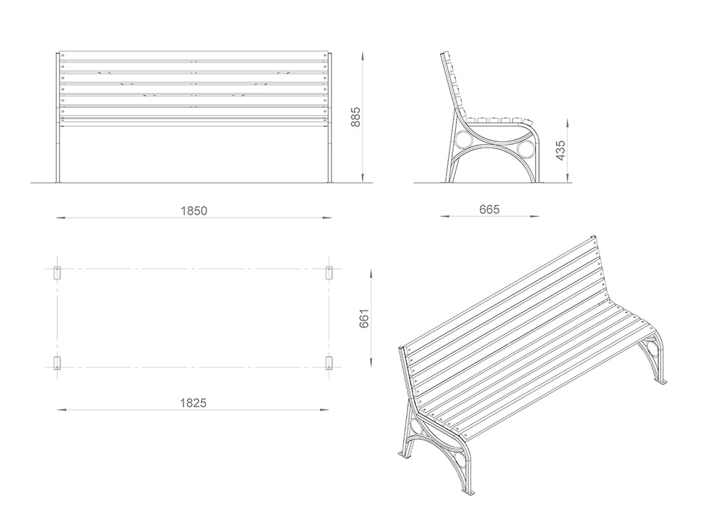 Настил/Спинка: сосна/лиственница. Покрытие: 1 слой пропитки стандартного цвета**, 2 слоя лака.