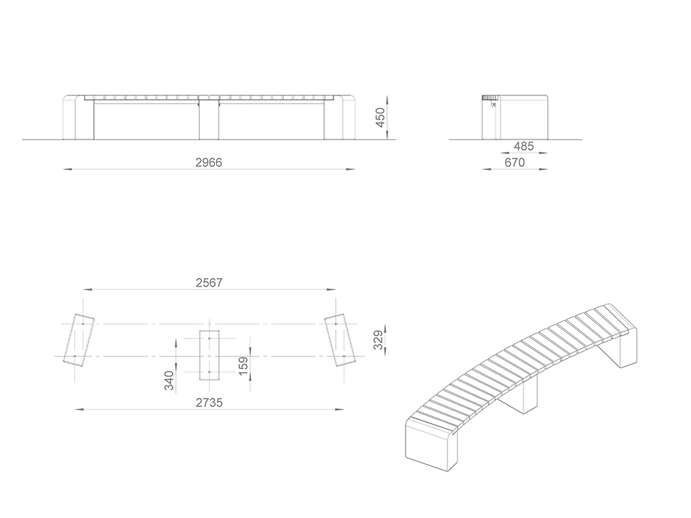 Скамейка «Форт» радиусная без спинки L3000