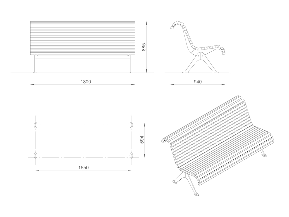 Настил/Спинка: сосна/лиственница. Покрытие: 1 слой пропитки стандартного цвета**, 2 слоя лака.