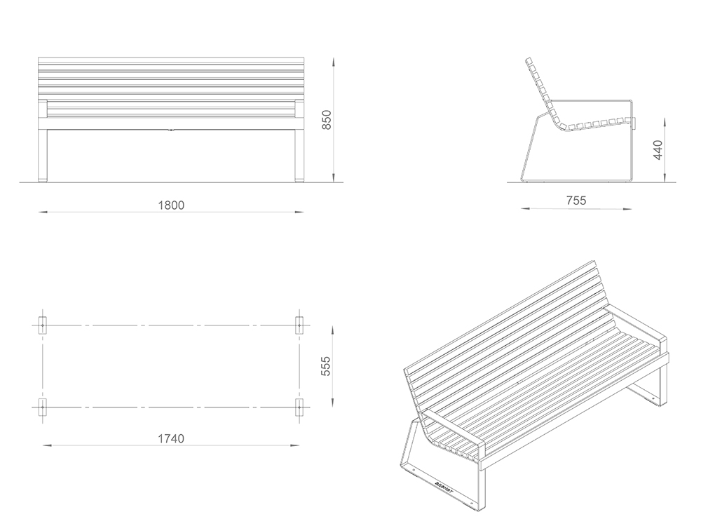 Настил/Спинка: сосна/лиственница. Покрытие: 1 слой пропитки стандартного цвета**, 2 слоя лака.