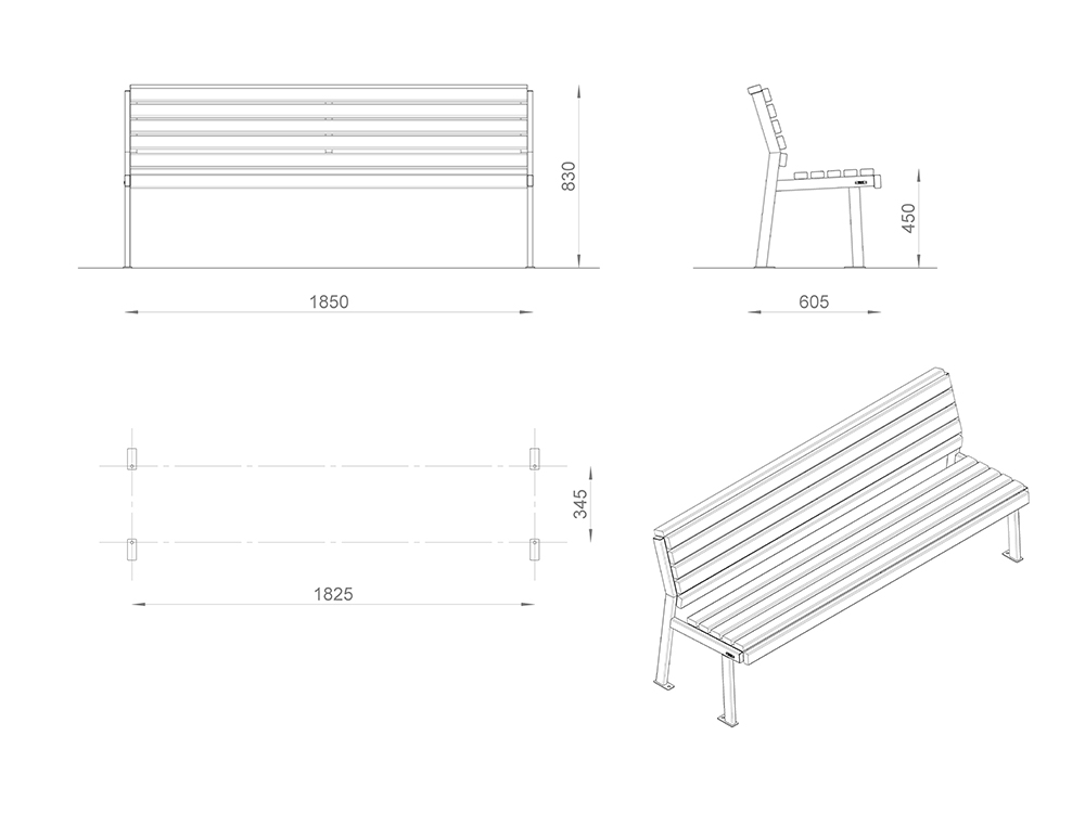 Настил/Спинка: сосна/лиственница. Покрытие: 1 слой пропитки стандартного цвета**, 2 слоя лака.