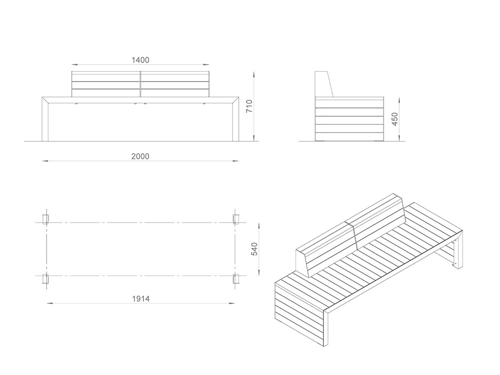 Настил/Спинка: сосна/лиственница. Покрытие: 1 слой пропитки стандартного цвета**, 2 слоя лака.