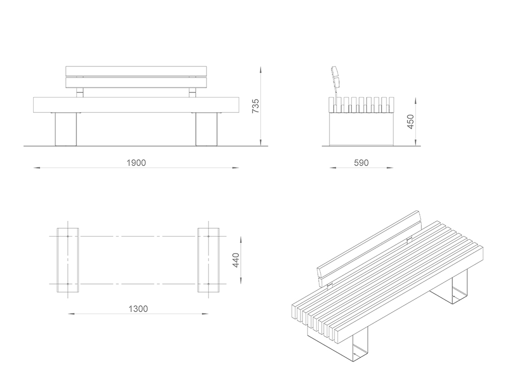 Настил/Спинка: сосна/лиственница. Покрытие: 1 слой пропитки стандартного цвета**, 2 слоя лака.