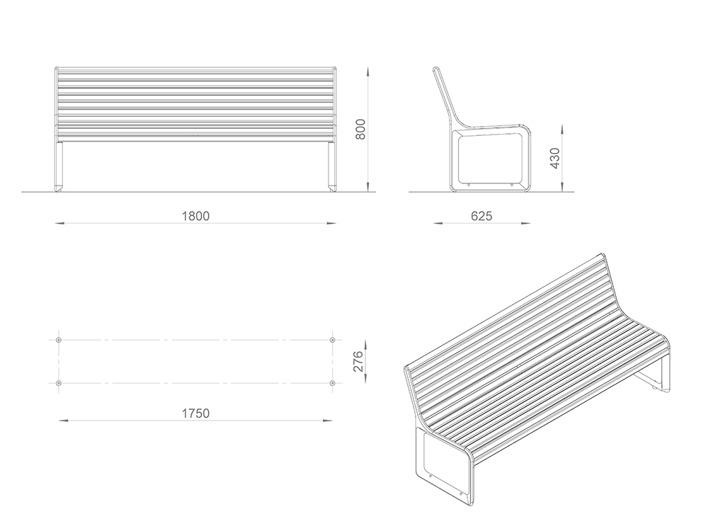 Настил/Спинка: сосна/лиственница. Покрытие: 1 слой пропитки стандартного цвета**, 2 слоя лака.